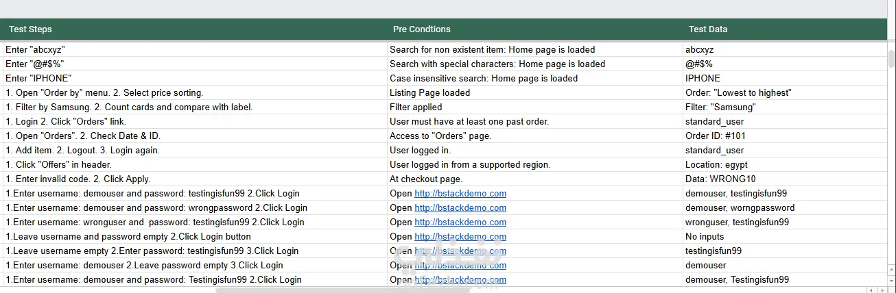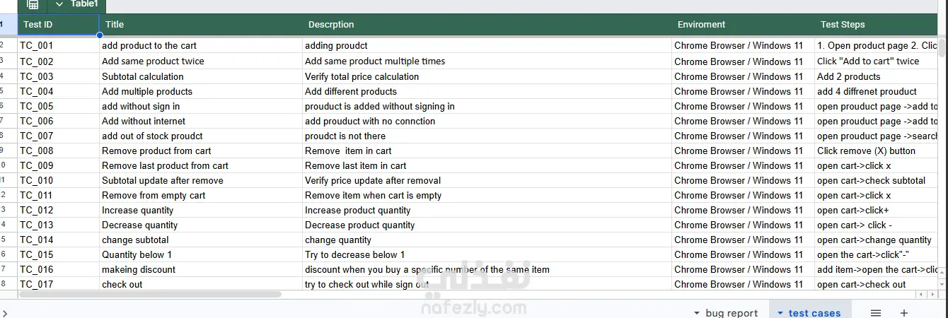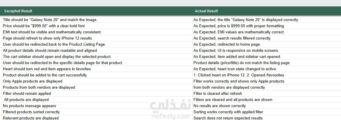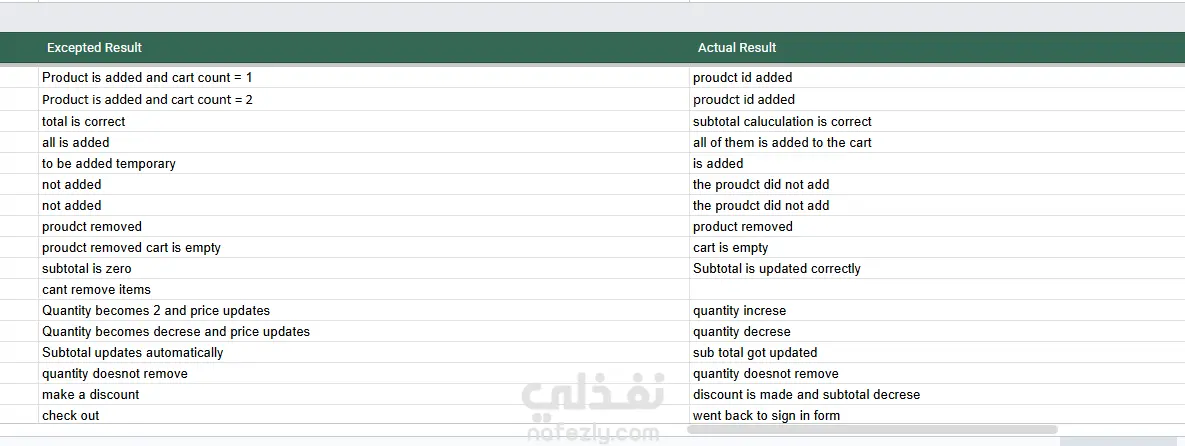 إذا كنت مبرمجاً وتريد اختبار مشروعك بدقة، سأقوم بكتابة سيناريوهات اختبار (Test Scenarios) وحالات اختبار (Test Cases) تفصيلية تغطي كافة الميزات (مثل السلة، البحث، الدخول)، جاهزة للتنفيذ.