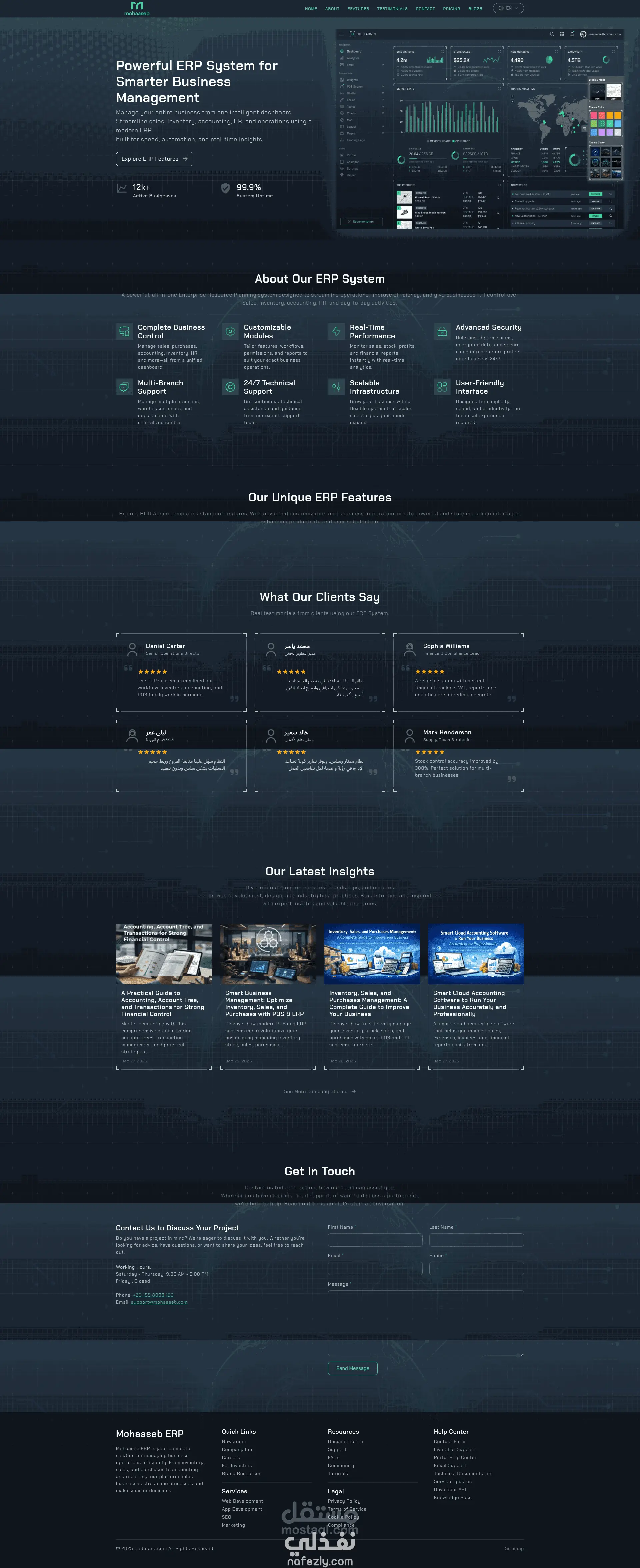محاسب: إدارة أعمالك بالكامل من مكان واحد يُعد "محاسب" نظام ERP سحابي شامل صُمم لتبسيط عملياتك التشغيلية وتسريع نمو مشروعك. نحن نجمع لك أنظمة نقاط البيع (POS)، المحاسبة، إدارة المخزون، والموارد البشرية في لوحة تحكم ذكية واحدة؛ مما يمنحك سيطرة كاملة على عملك وتجربة إدارة سلسة بعيداً عن أي تعقيد. التقنيات المستخدمه في العمل - بوابات الدفع الالكتروني مع امكانيه التوسع في بوابات الدفع بأقل مجهود - الاشعارات سواء ايميل او اشعارات داخليه او realtime - المشروع مبني بطريقه ال multi-tenant - Double entey المشهوره بين المحاسبين وتشمل كل شئ في المشروع - يدعم العديد من اللغات مع امكانيه اضافه لغات جديده وتطبيقها بشكل فوري - نظام الفواتير والطباعه - التقارير المتقدمه وتنوعها بشكل كبير