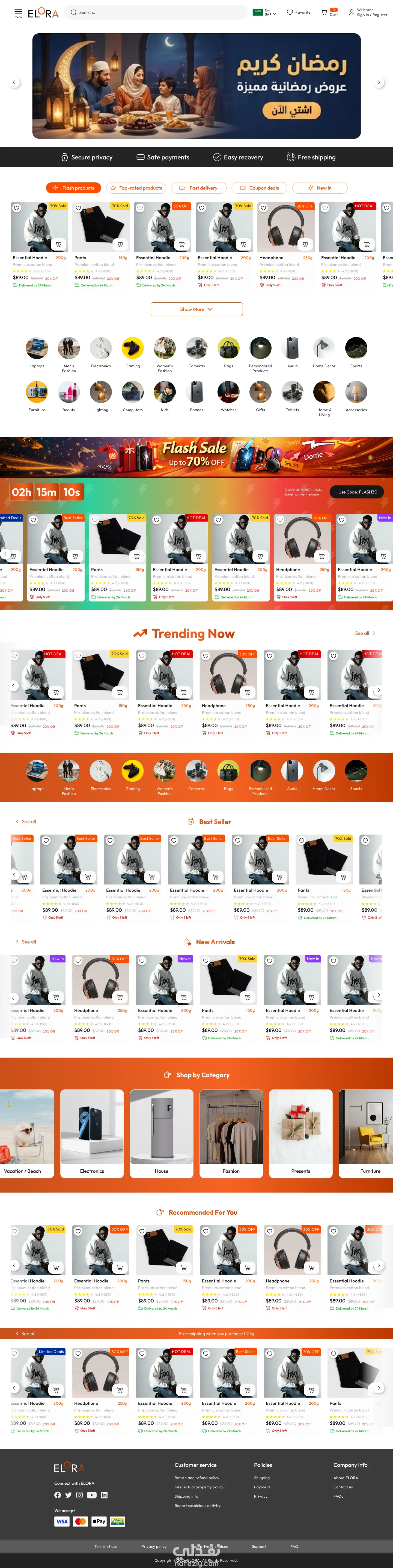 برمجة وتطوير متجر إلكتروني متكامل متعدد البائعين والأقسام (Multi-Vendor)