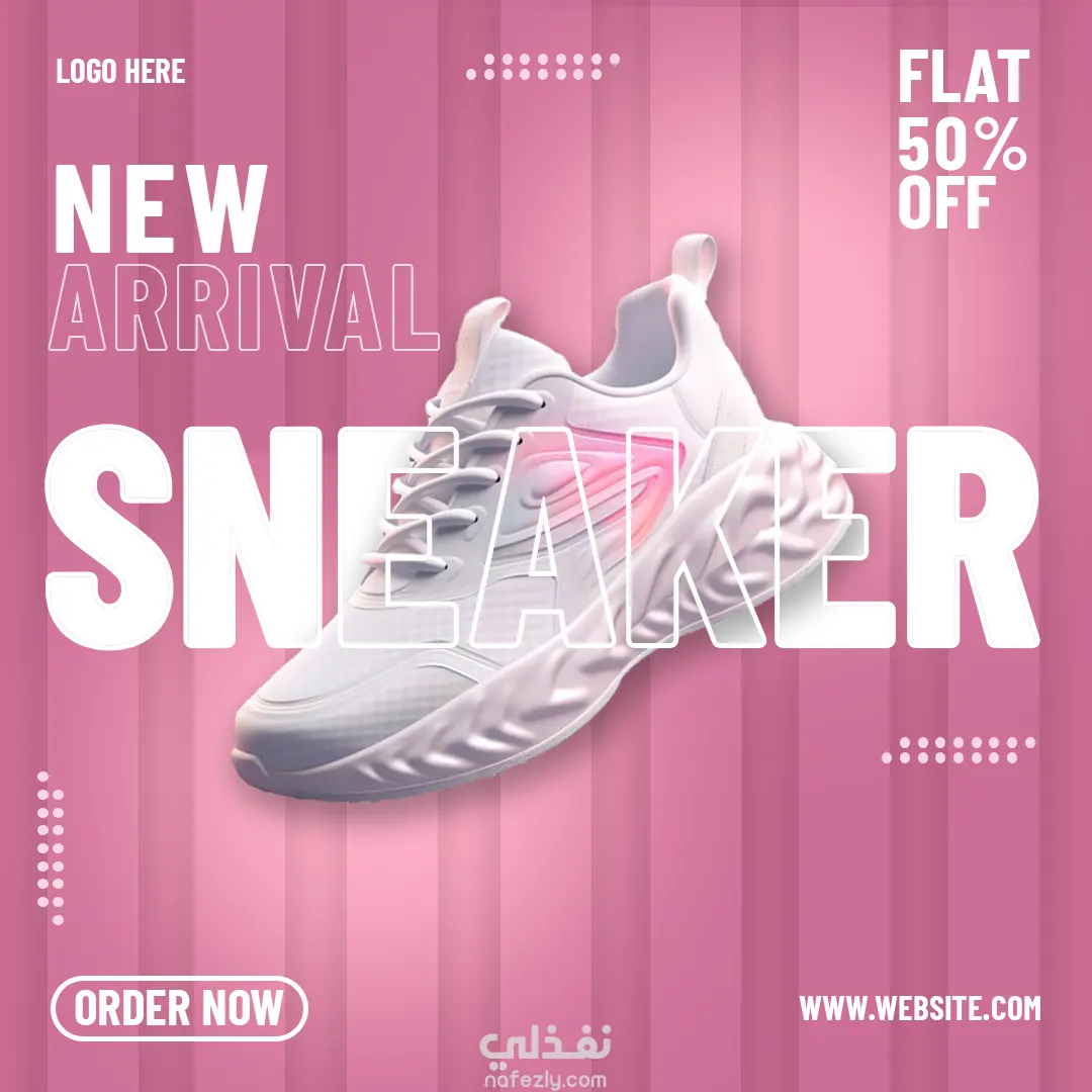 التوجيه التسويقي: توزيع العناصر البصرية لضمان وضوح رسالة الخصم (50% Off) مع الحفاظ على "زر اتخاذ الإجراء" (Call to Action) بشكل بارز.