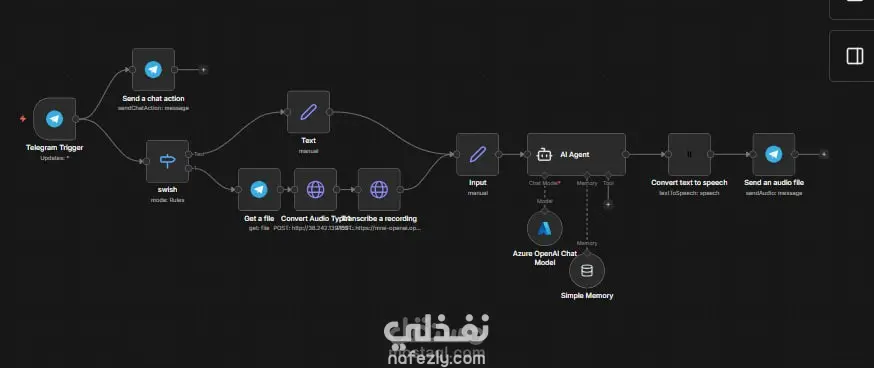 برمجة وتطوير روبوت خدمة عملاء ذكي (AI Agent) يعمل عبر منصة تليجرام باستخدام بيئة n8n. يتخطى هذا المشروع فكرة البوتات التقليدية؛ فهو يتفاعل مع العملاء عبر الرسائل الصوتية (Voice Notes)، حيث يستمع للعميل، يحلل كلامه، يقوم بتنفيذ الإجراء المطلوب (مثل حجز صيانة)، ثم يرد على العميل بـ رسالة صوتية بشرية بلهجة احترافية تعتمد على سياق الحوار.