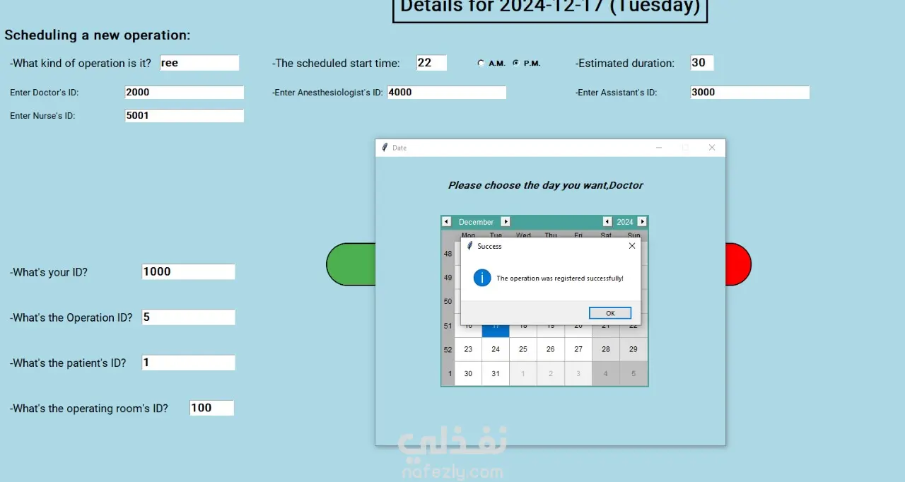 تطبيق مكتبي لإدارة وتنظيم جداول العمليات الجراحية، يهدف إلى تقليل العشوائية داخل غرف العمليات وضمان عدم حدوث تعارضات في المواعيد أو توزيع الطاقم الطبي. تم تطوير النظام باستخدام Python للـ Backend وربطه بقاعدة بيانات Microsoft SQL Server، مع تصميم قاعدة البيانات وفق قواعد 3NF لضمان الكفاءة وسلامة البيانات. يوفر النظام صلاحيات مختلفة للأطباء، وإدارة كاملة لقائمة العمليات، مع تنظيم توزيع الأطباء والممرضين والمرضى بحيث لا يحدث تداخل في العمليات أو المواعيد.