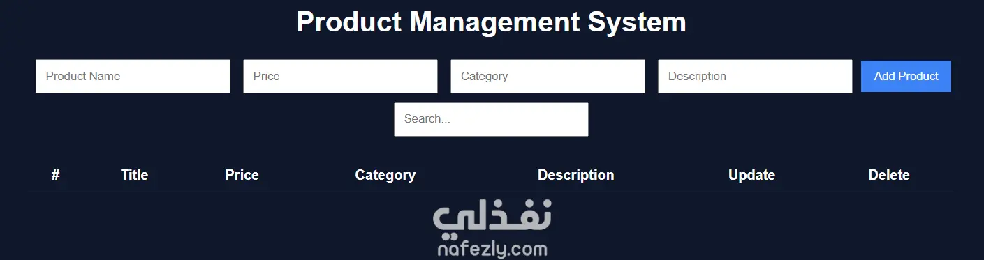 "قمت بتطوير تطبيق إدارة منتجات (Product Management System) يتيح إضافة وتعديل وحذف والبحث عن المنتجات بطريقة ديناميكية.