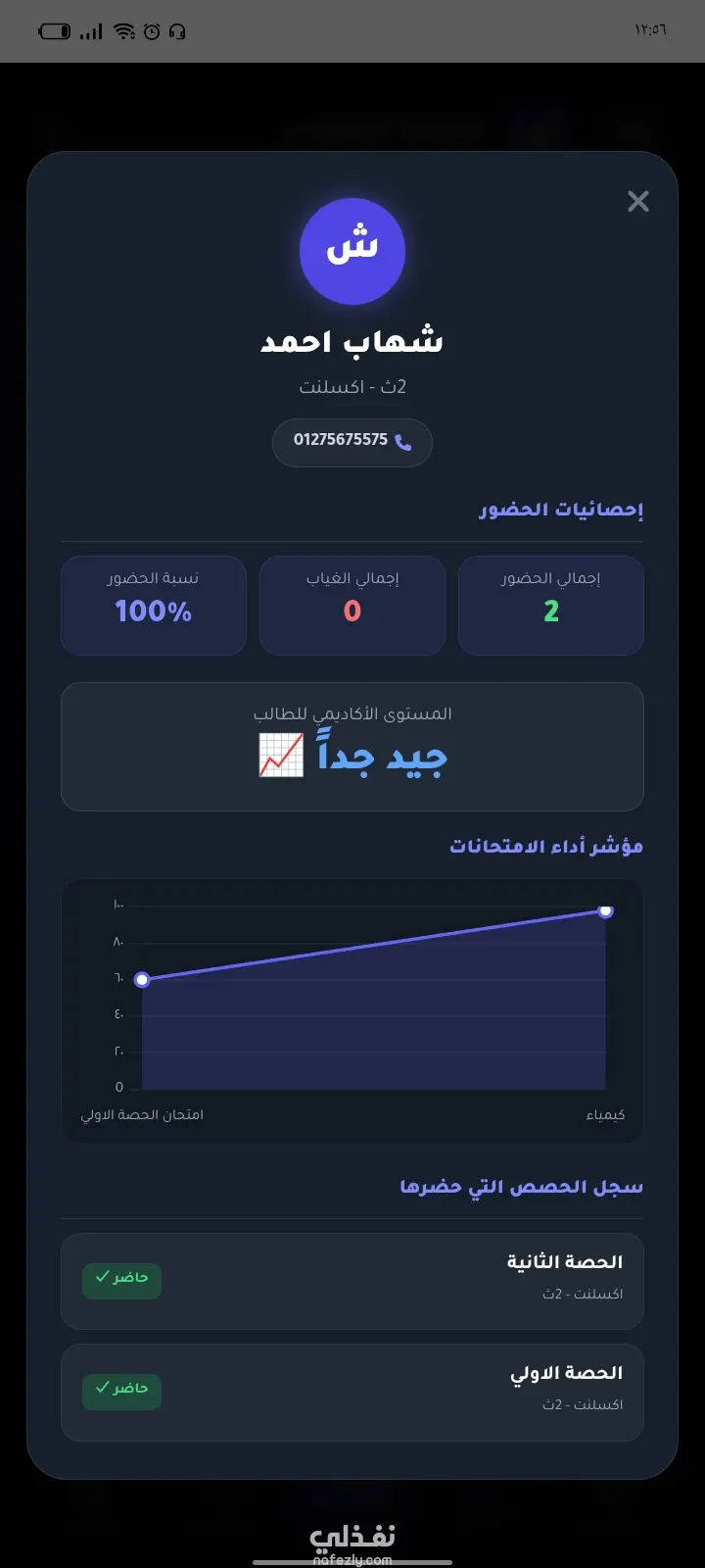 قمت بانشاء تطبيق كامل لادارة الطلاب من حيث حضورهم و تقييماتهم في الحصص و درجات الامتحانات و مستواهم الشام و يتم ارسال كل تلك المعلومات الي ولي الامر و يتم تسجيل حضور الطالب عبر QR-CODE الخاصبة الذي يكون علي كارت خاص بي المعلم