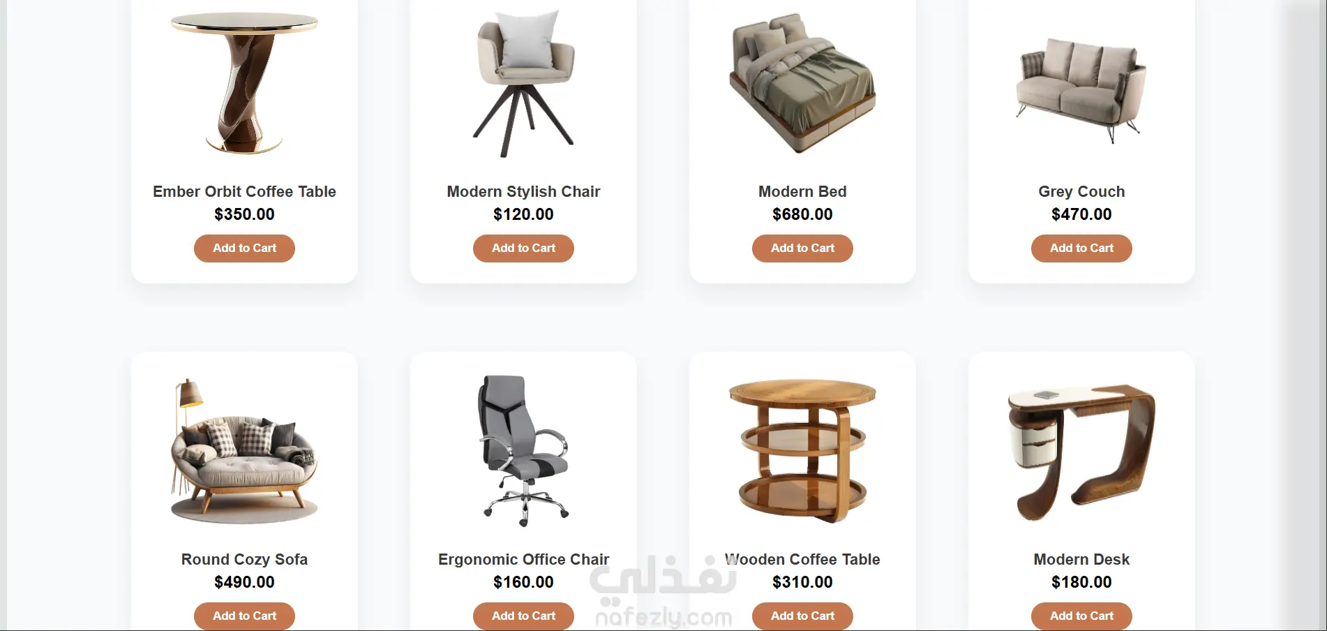 تصميم وبرمجة واجهة مستخدم (UI) لمتجر أثاث عصري
