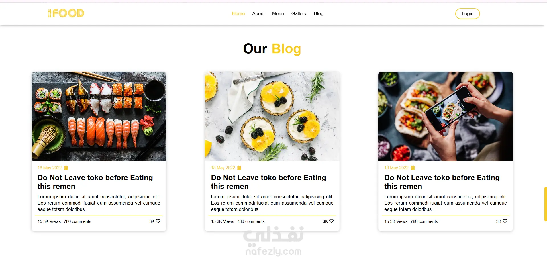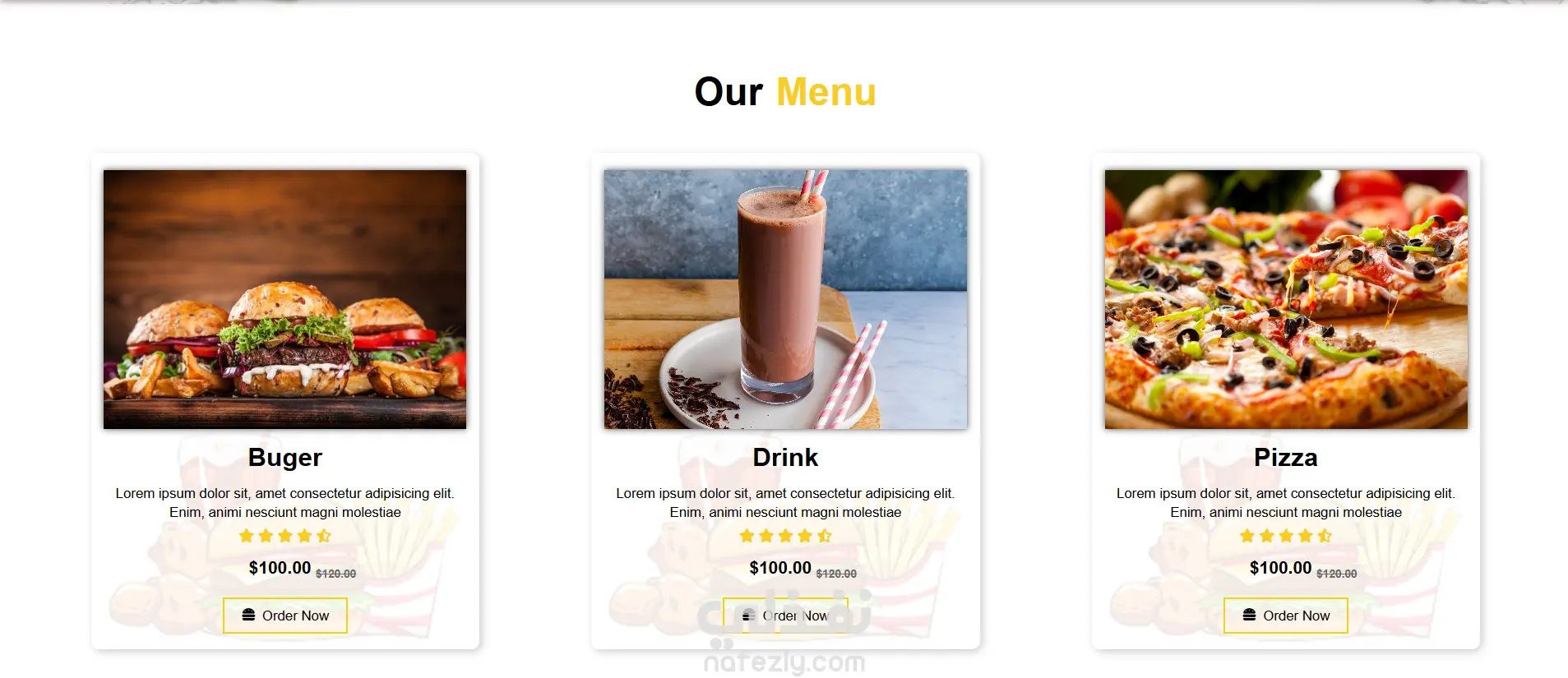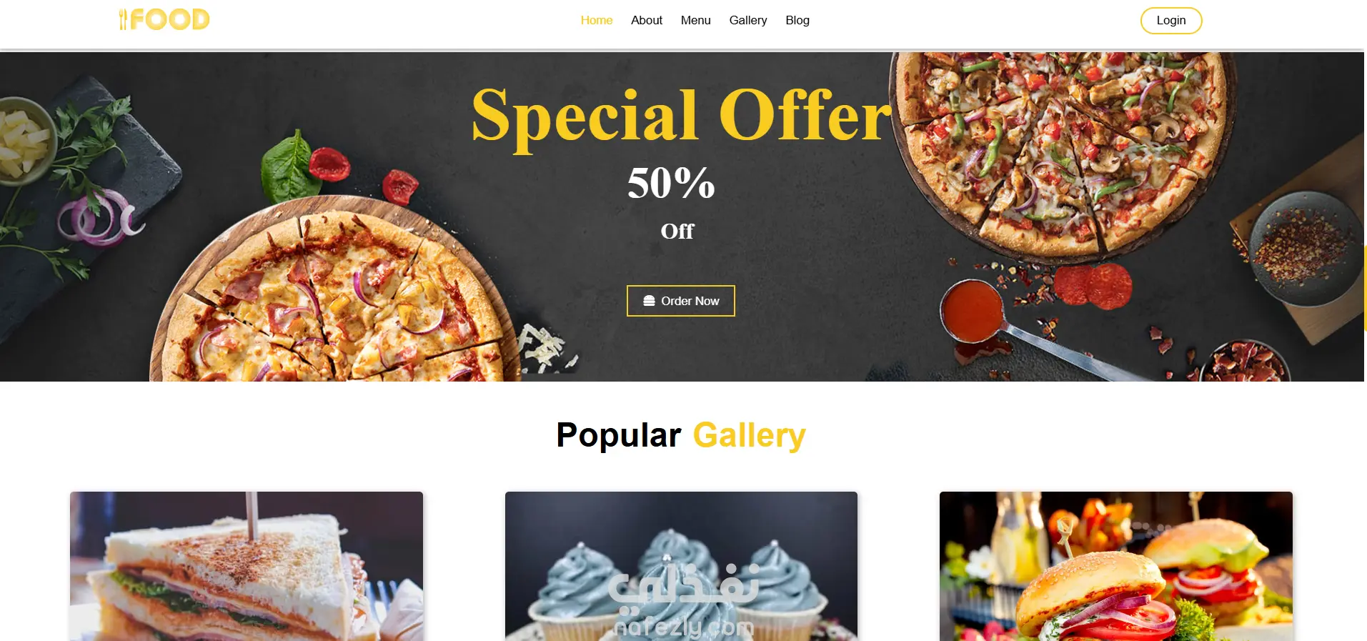 تصميم وتطوير موقع ويب لمطعم باستخدام HTML وCSS وJavaScript، يهدف إلى تقديم تجربة مستخدم واضحة وجذابة لعرض خدمات المطعم ومنيو الطعام والعروض الخاصة بطريقة منظمة وسهلة التصفح.