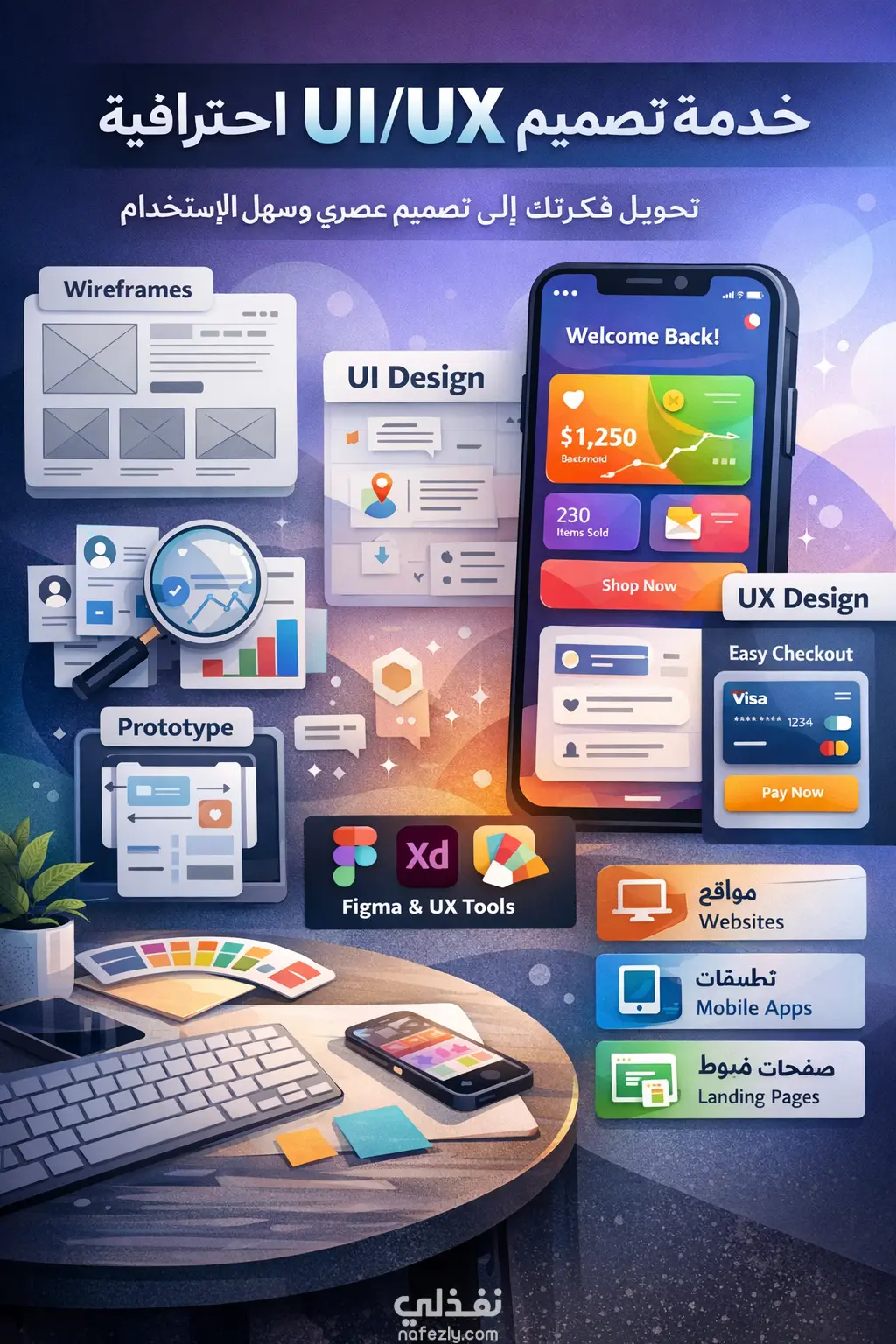 أقدم خدمة تصميم واجهات وتجربة المستخدم (UI/UX) احترافية تهدف إلى تحويل فكرتك إلى تصميم عصري وسهل الاستخدام، مع التركيز على راحة المستخدم وجمال الواجهة.