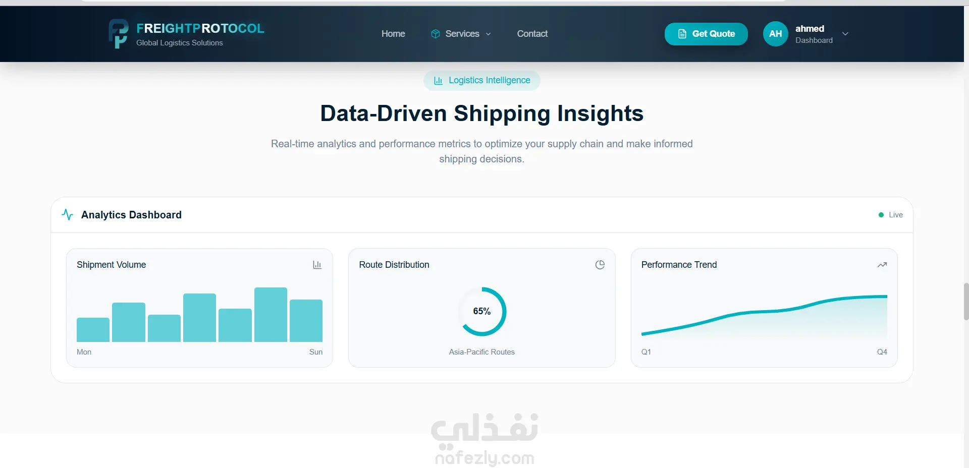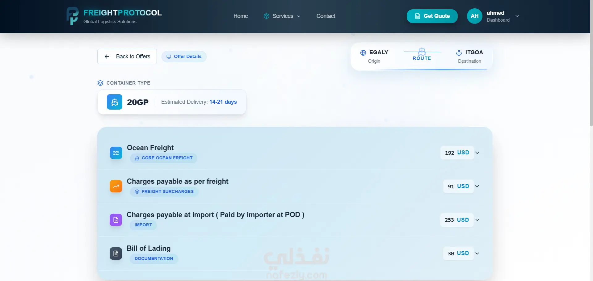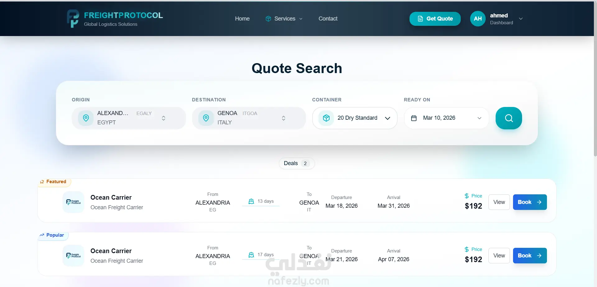 تم تصميم FreightX لتبسيط عمليات الشحن البحري المعقدة وتحويلها إلى تجربة رقمية موثوقة. تهدف المنصة إلى سد الفجوة بين شركات الشحن والمستوردين من خلال توفير أدوات ذكية تتيح حجز الشحنات، تتبع حركتها عبر الحدود الدولية، والوصول إلى كافة التفاصيل من نقطة الانطلاق وحتى وجهة الوصول النهائية.