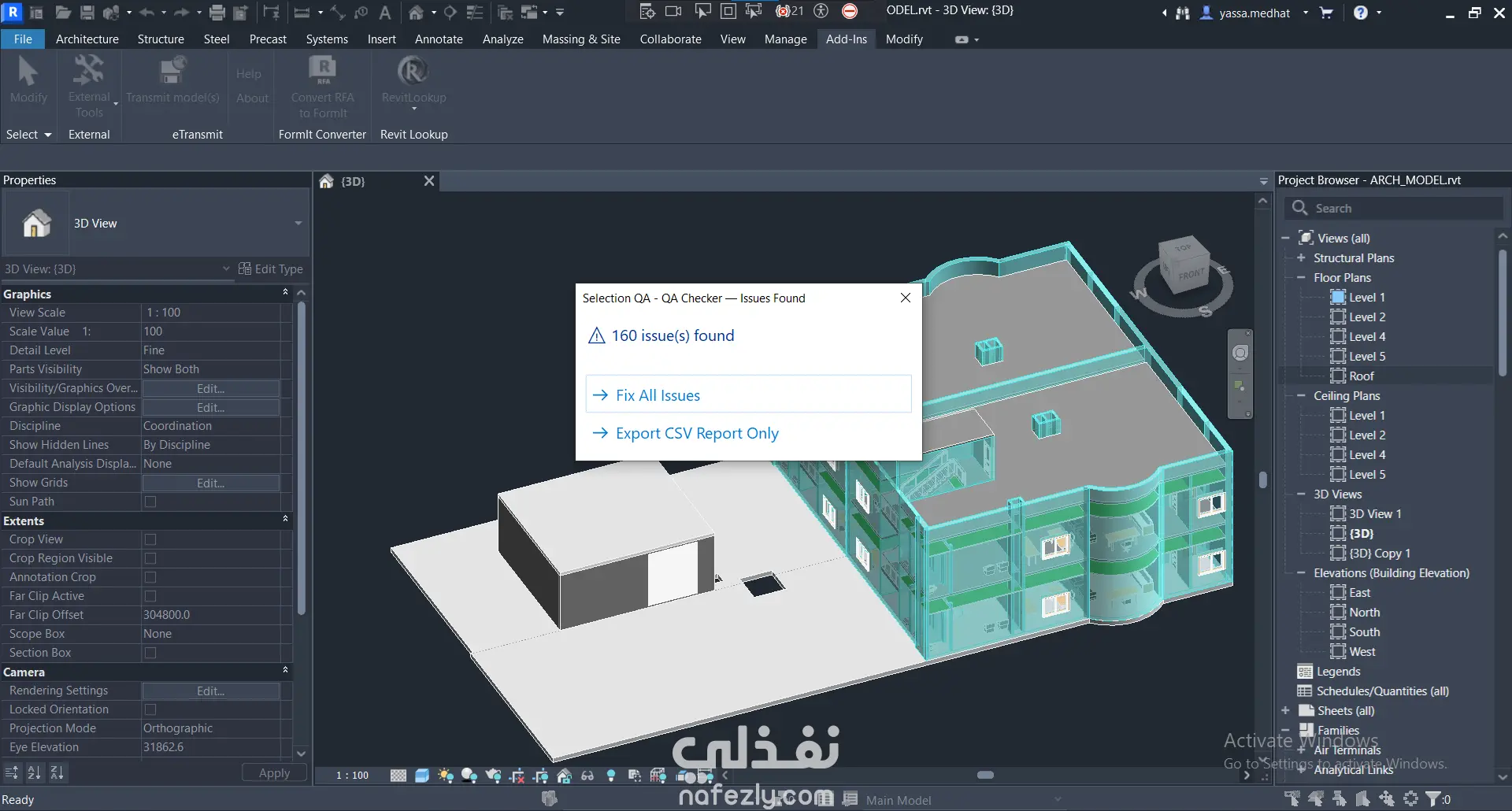 إضافات احترافية لبرنامج Autodesk Revit مبنية بـ C# وRevit API، تتيح للمهندسين مراجعة جودة نموذج BIM مباشرةً داخل Revit. تشمل الإضافات لوحة معلومات للمشروع، محلل للجدران مع تصدير النتائج إلى CSV، ومدقق QA تلقائي يرصد المشكلات ويقترح الإصلاح وغيرها. التقنيات: C# · Revit API