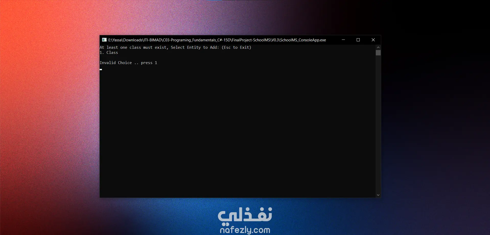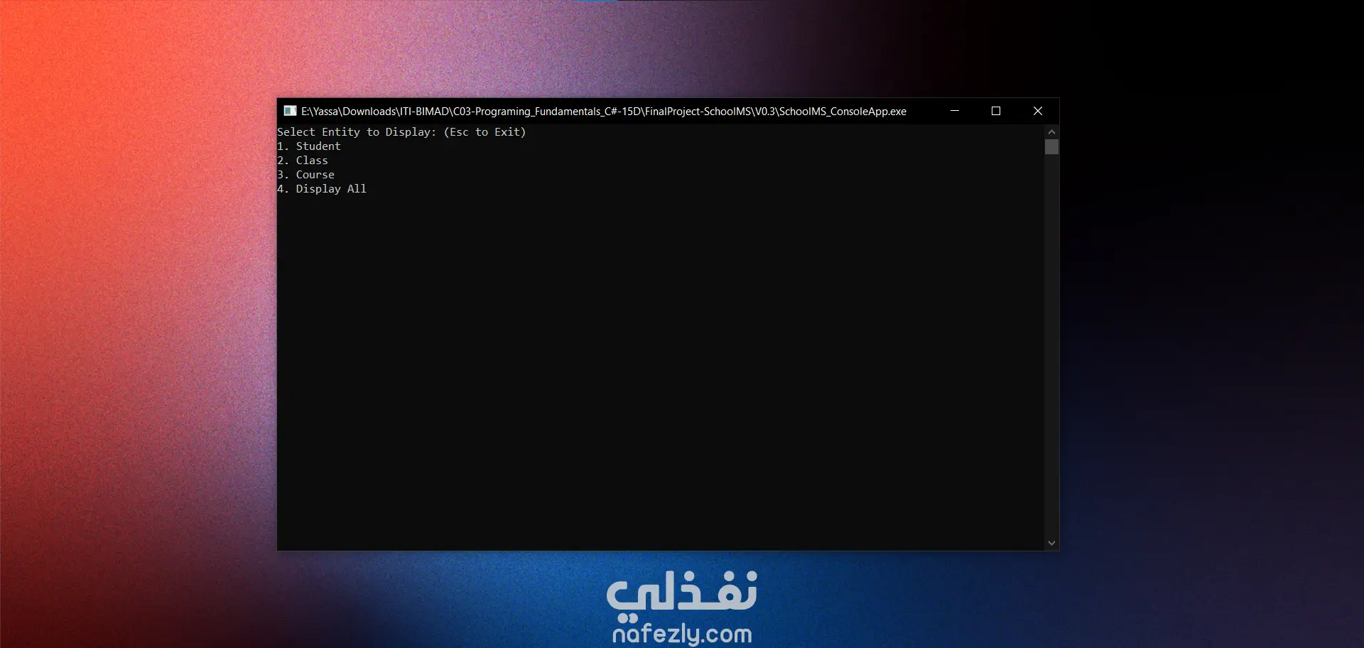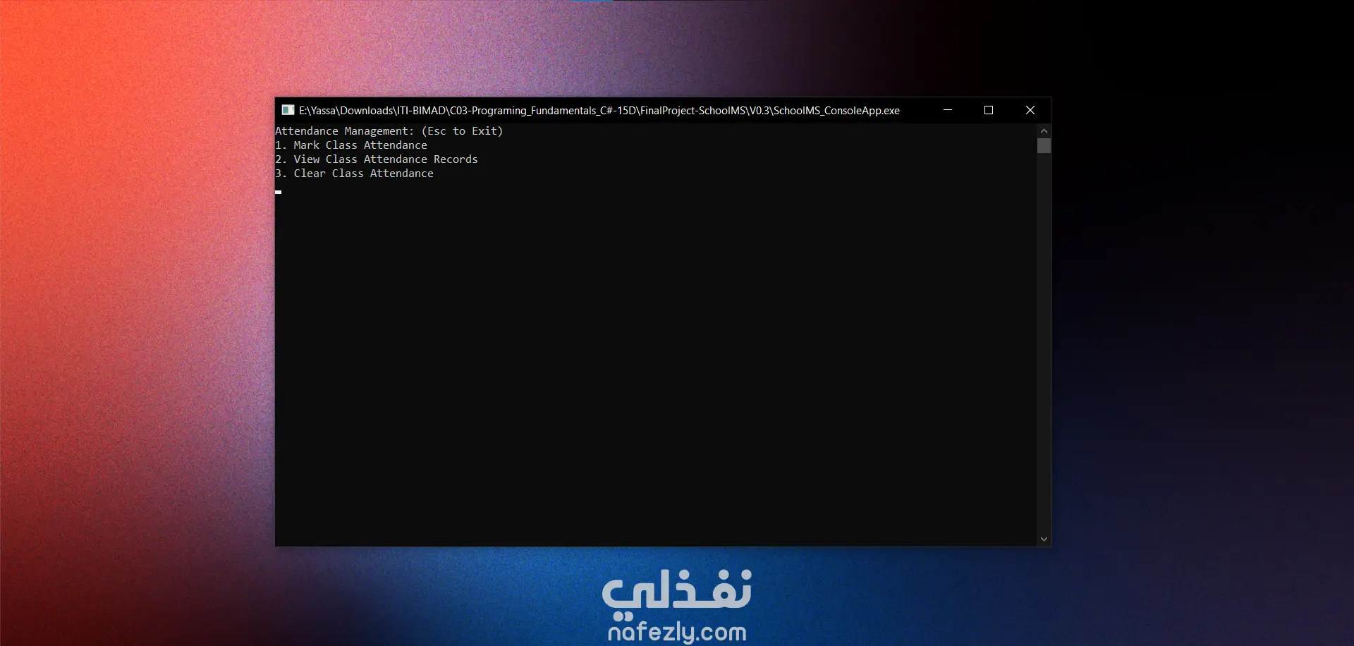تطبيق إدارة مدرسية يغطي دورة البيانات الكاملة: إضافة الطلاب والمقررات والفصول، تسجيل الحضور والغياب، وربط الطلاب بالفصول والمقررات. يعكس التطبيق فهماً عملياً لتصميم قواعد البيانات العلائقية والبرمجة الهيكلية. التقنيات: C# · .NET Core · SQLite · Console UI