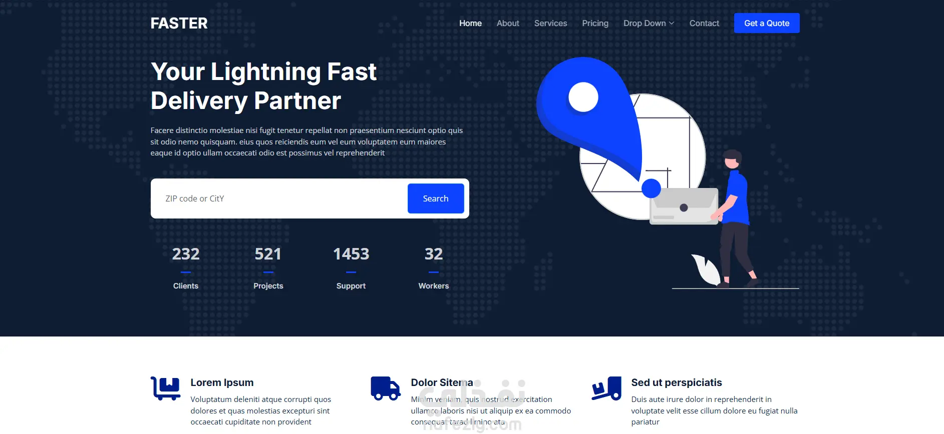 - قسم Hero جذاب مع Search Bar
