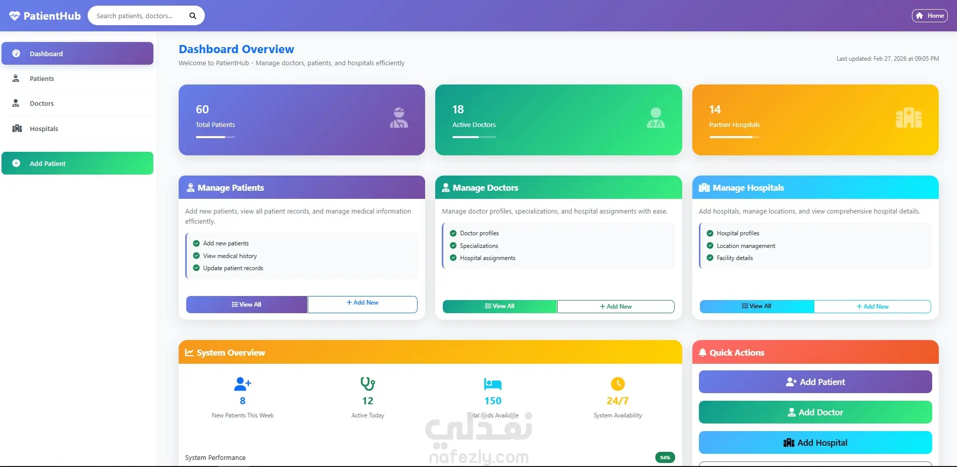 قمت بتطوير نظام ويب متكامل لإدارة بيانات المرضى والملفات الطبية، يهدف إلى تسهيل تنظيم العمل داخل العيادات والمراكز الطبية بشكل عملي وآمن. يوفر النظام لوحة تحكم (Admin Dashboard) تتيح إدارة المرضى والمواعيد والسجلات الطبية بسهولة، مع تصميم واجهة استخدام بسيطة ومتجاوبة تساعد على سرعة التعامل مع النظام. مميزات النظام: إضافة وتعديل وحذف بيانات المرضى (CRUD Operations) إدارة مواعيد المرضى وتنظيمها حفظ السجلات الطبية لكل مريض عرض البيانات داخل جداول منظمة في لوحة التحكم التحقق من صحة البيانات (Validation) قبل الحفظ واجهة مستخدم متجاوبة تعمل على جميع الأجهزة التقنيات المستخدمة: ASP.NET Core MVC C# Entity Framework Core SQL Server HTML / CSS / JavaScript Bootstrap تم تطوير النظام باستخدام نمط MVC Architecture لفصل منطق التطبيق عن الواجهة، مع تصميم قاعدة بيانات مترابطة تضمن سرعة الوصول للبيانات وسهولة إدارتها. ركزت أثناء التنفيذ على الأمان، تنظيم البيانات، وسهولة الاستخدام لتقديم نظام عملي يمكن الاعتماد عليه في بيئة العمل.