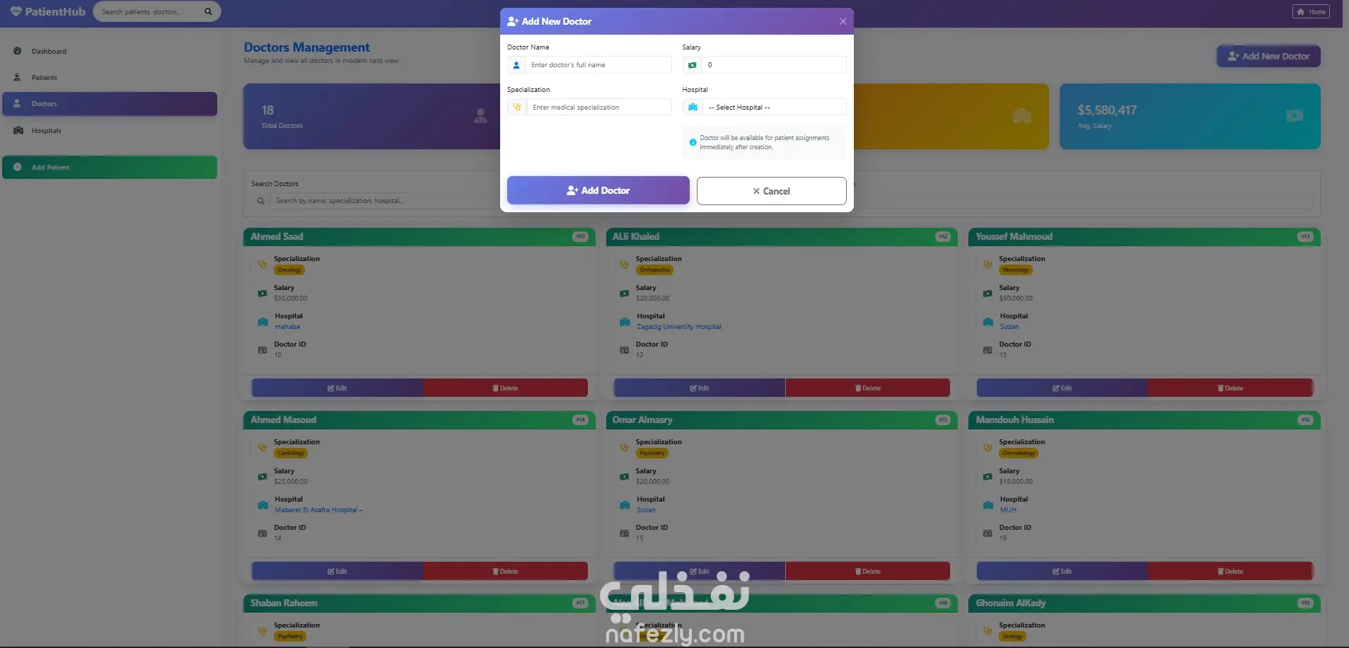 تطوير نظام إدارة المرضى PatientHub باستخدام ASP.NET Core MVC