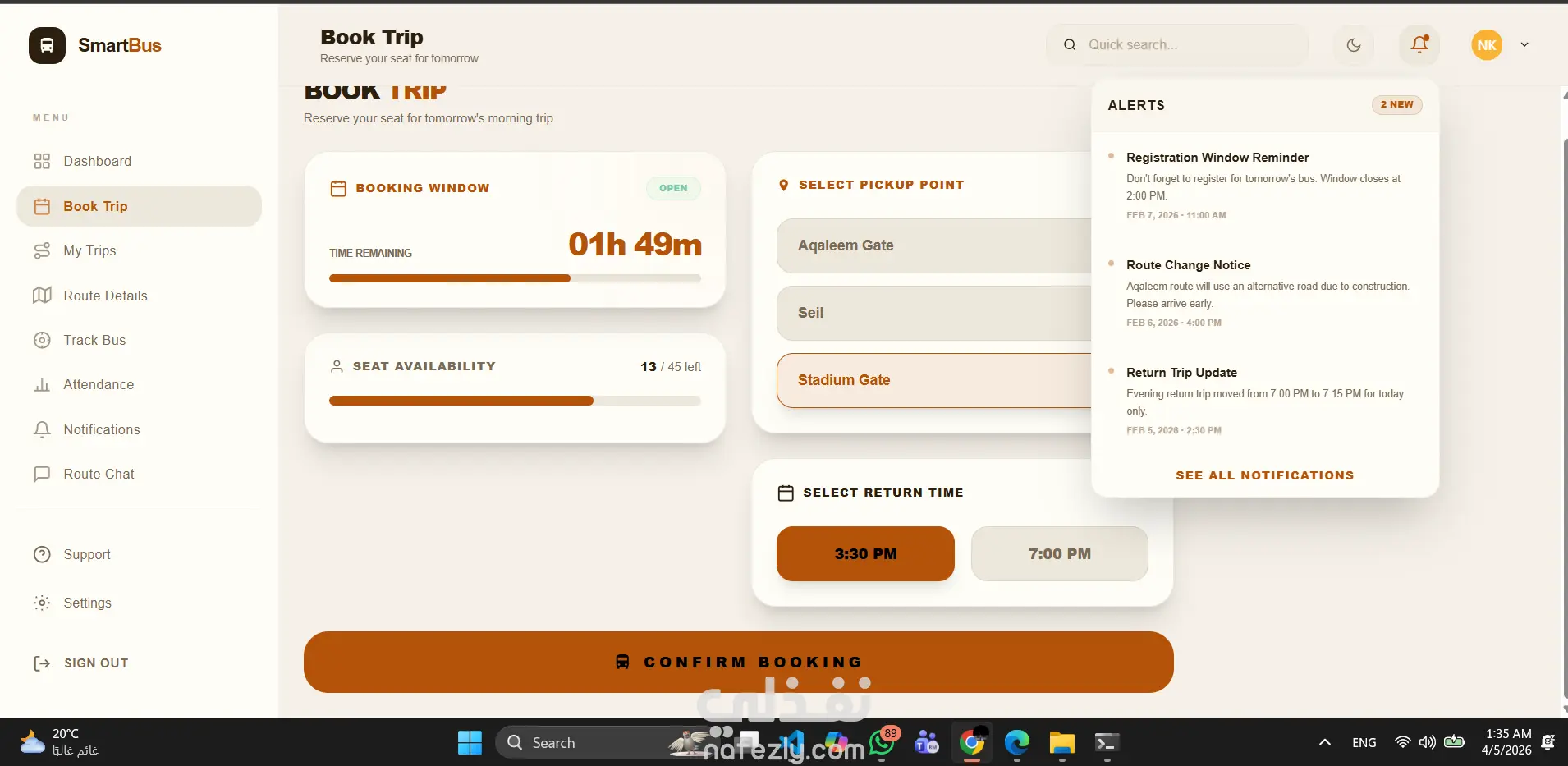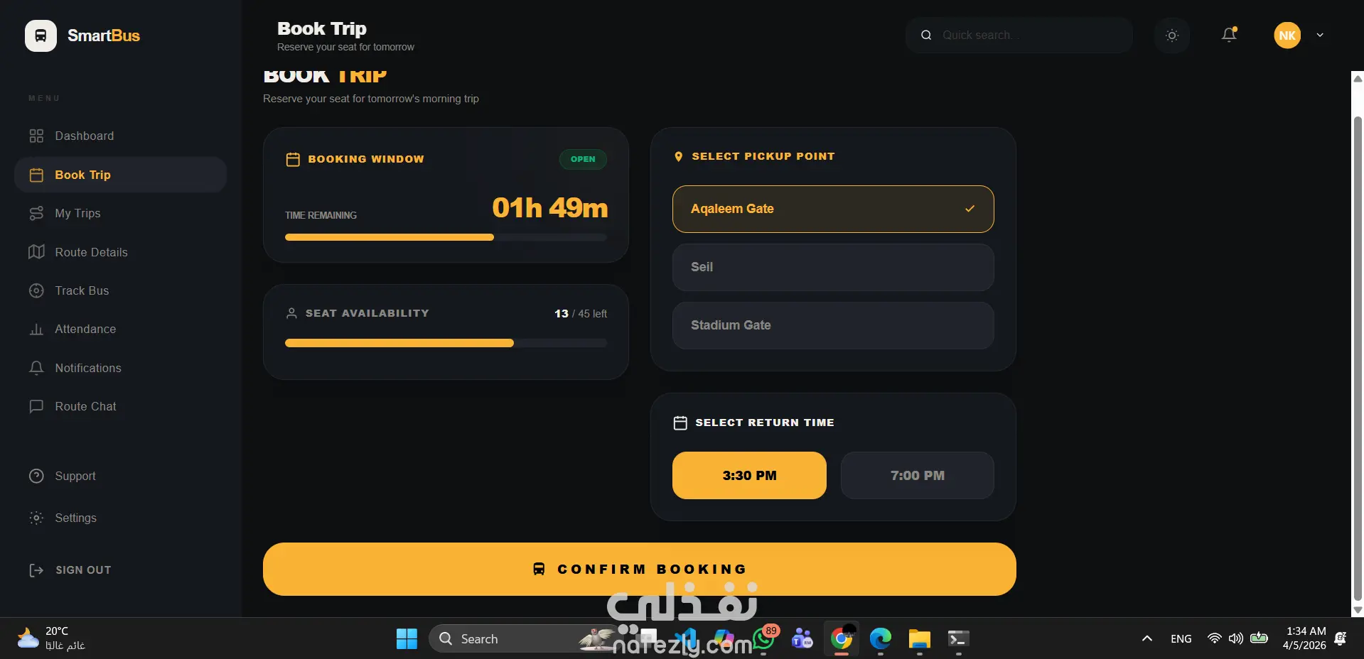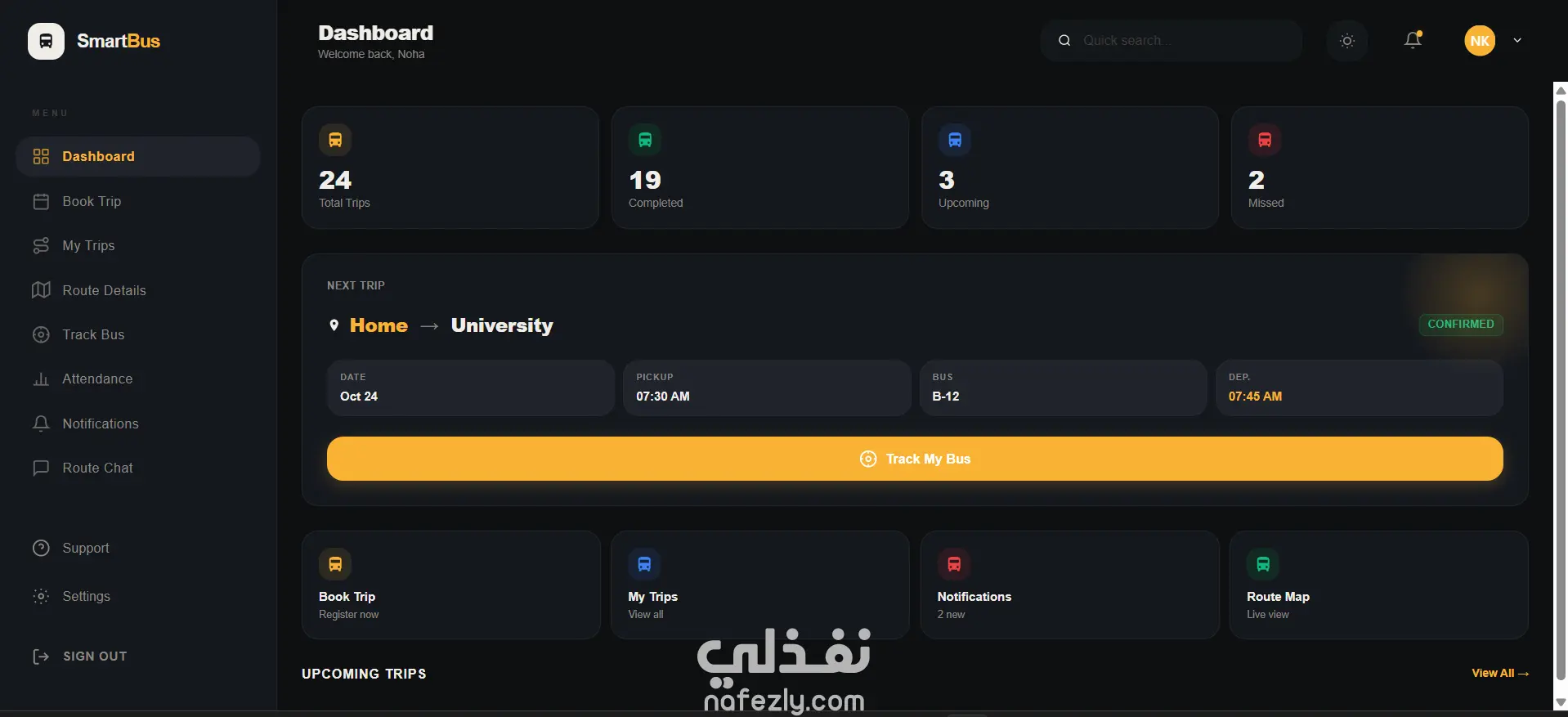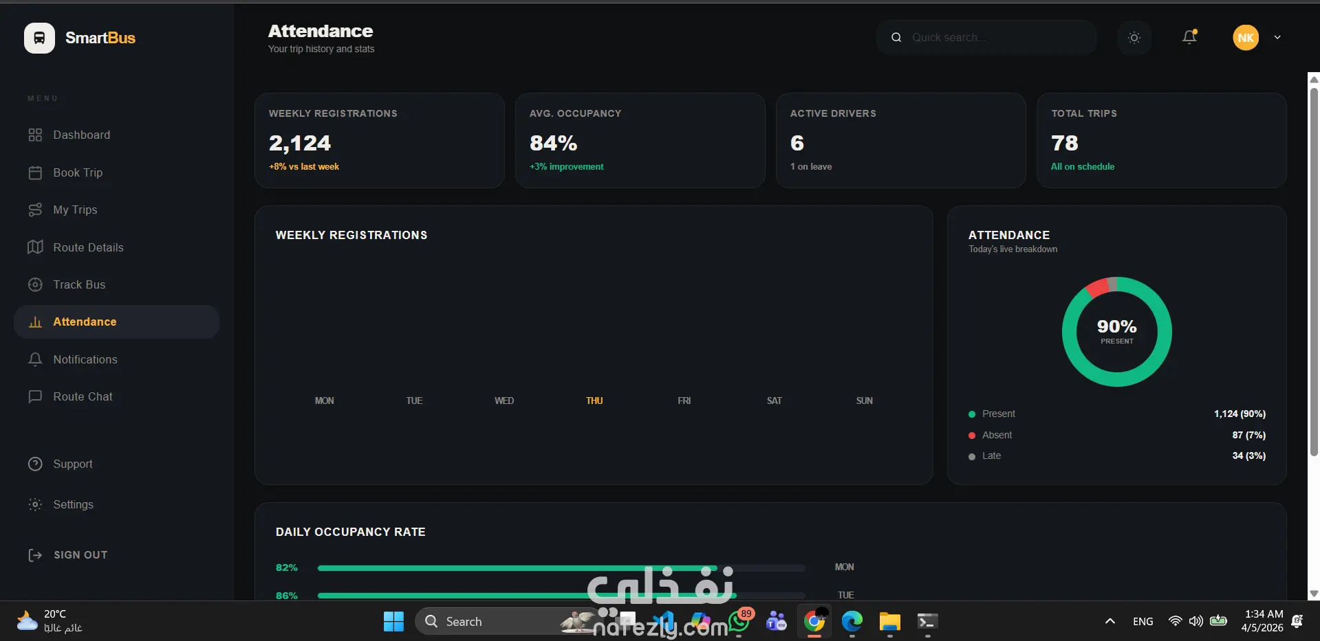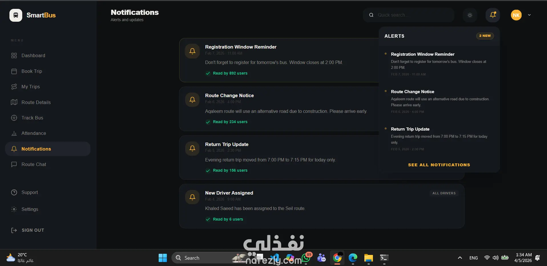 تطوير موقع SmartBus نظام نقل جامعي ذكي