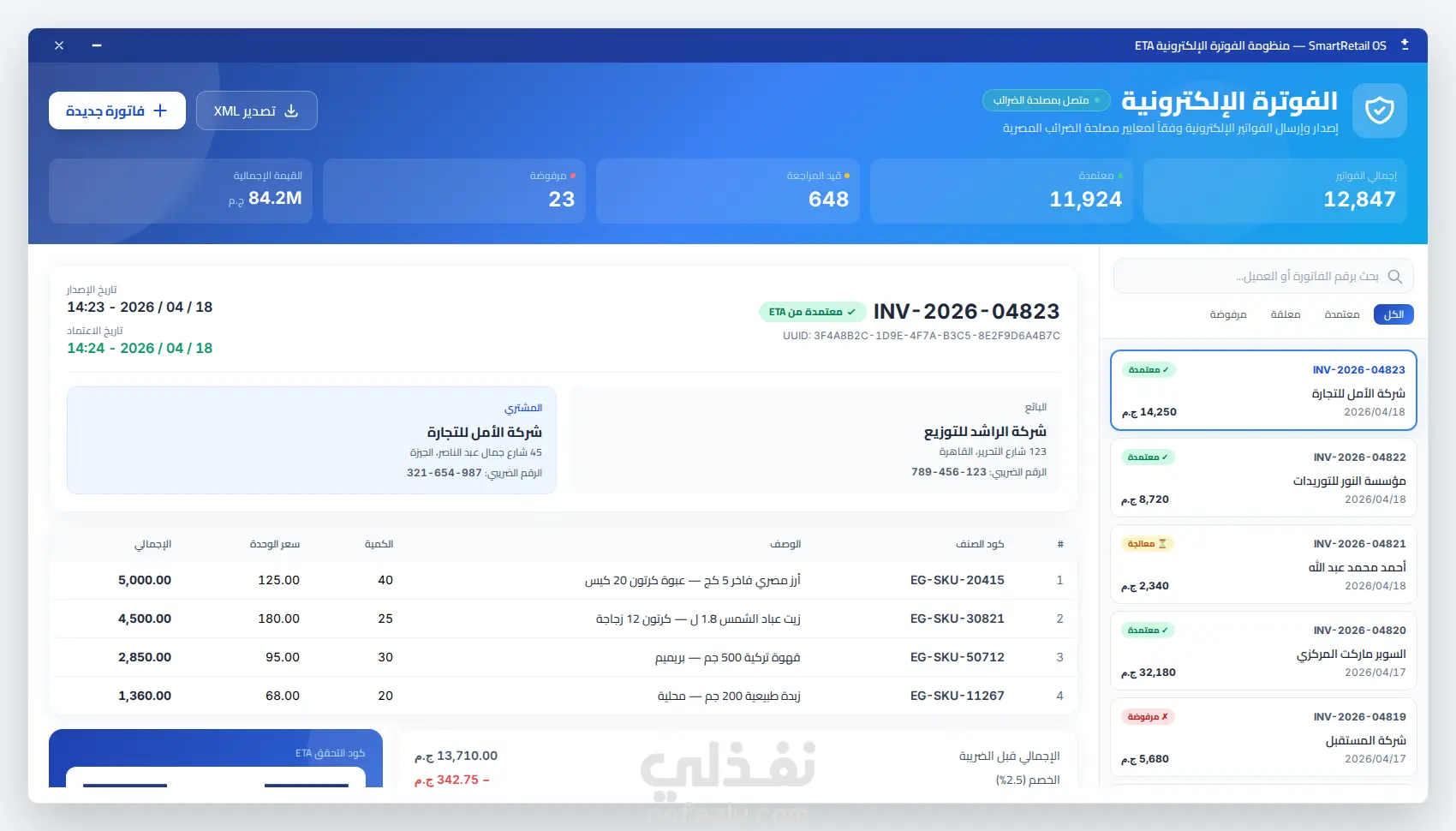 - الفوترة الإلكترونية المتوافقة مع مصلحة الضرائب المصرية (ETA E-Invoicing) ✅