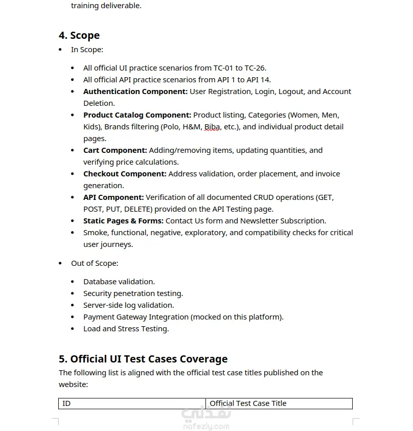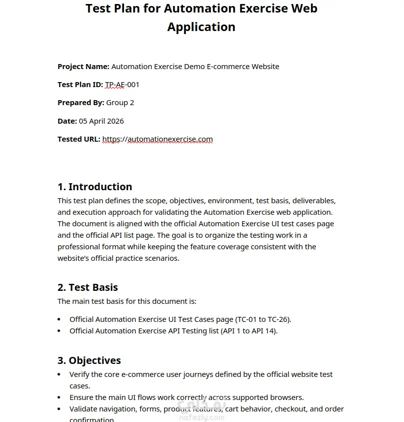Developed a comprehensive IEEE 829-standard Test Plan for the Automation Exercise e-commerce web application as part of a group QA project.