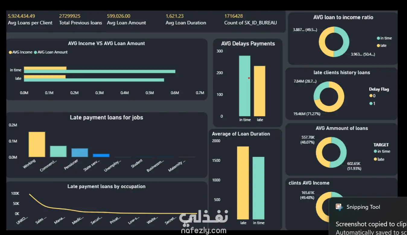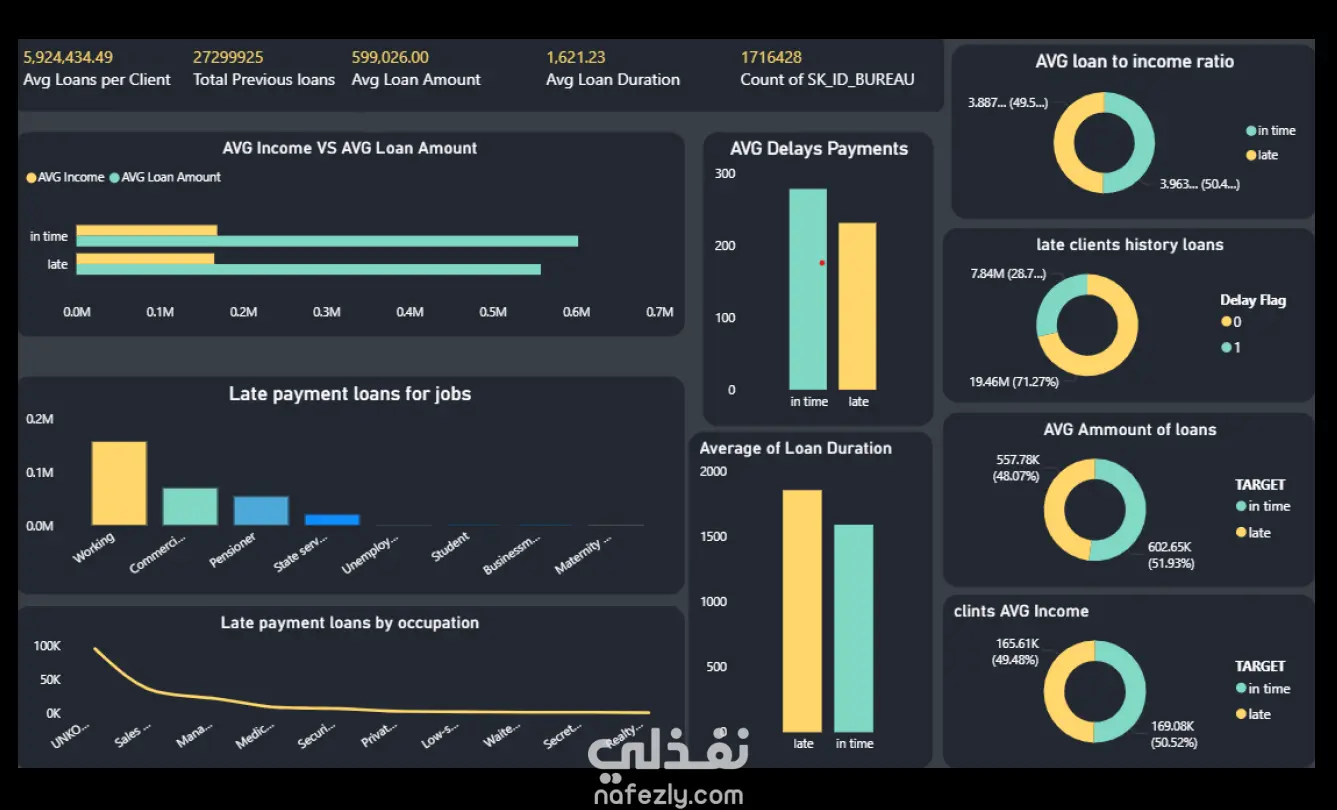 🎯 يهدف مشروعي "تحليل سلوك ائتمان العملاء" إلى فهم كيفية إدارة العملاء لقروضهم، ومن يسدد في الوقت المحدد، ومن يتخلف عن السداد، ولماذا. مجموعة بيانات الائتمان العالمية: تنظيف البيانات باستخدام بايثون نمذجة البيانات باستخدام باور بي آي إنشاء لوحة معلومات باستخدام باور بي آي ⛔ التحديات التي واجهتني: إدارة مجموعات بيانات ضخمة تحتوي على قيم مفقودة وتنسيقات غير متناسقة. إنشاء خصائص مجمعة ذات دلالة من بيانات الرصيد الشهري. تصميم عرض مرئي واضح يُبرز الأنماط ويُساعد في اتخاذ القرارات. 💡 أهم النتائج: معدل التخلف عن السداد ≈ 8%، مما يعني أن معظم العملاء يسددون في الوقت المحدد. تُعد العوامل السلوكية (التأخر في السداد، نوع الوظيفة، الحالة الاجتماعية) مؤشرات أقوى للتخلف عن السداد من الدخل أو حجم القرض. يُعد استقرار السكن وسجل السداد مؤشرين حاسمين للتنبؤ بالمخاطر. 📌 التوصيات: تطبيق أنظمة إنذار مبكر للكشف عن العملاء الذين تظهر عليهم علامات التأخر في السداد. قسّم العملاء إلى شرائح بناءً على سلوك السداد واستقرار الدخل لتخصيص استراتيجيات الإقراض. وفّر خيارات سداد مرنة للعملاء ذوي الدخل غير المستقر للحد من مخاطر التخلف عن السداد. استخدم التحليلات التنبؤية والتعلم الآلي لتحديد حالات التخلف عن السداد المحتملة قبل حدوثها.