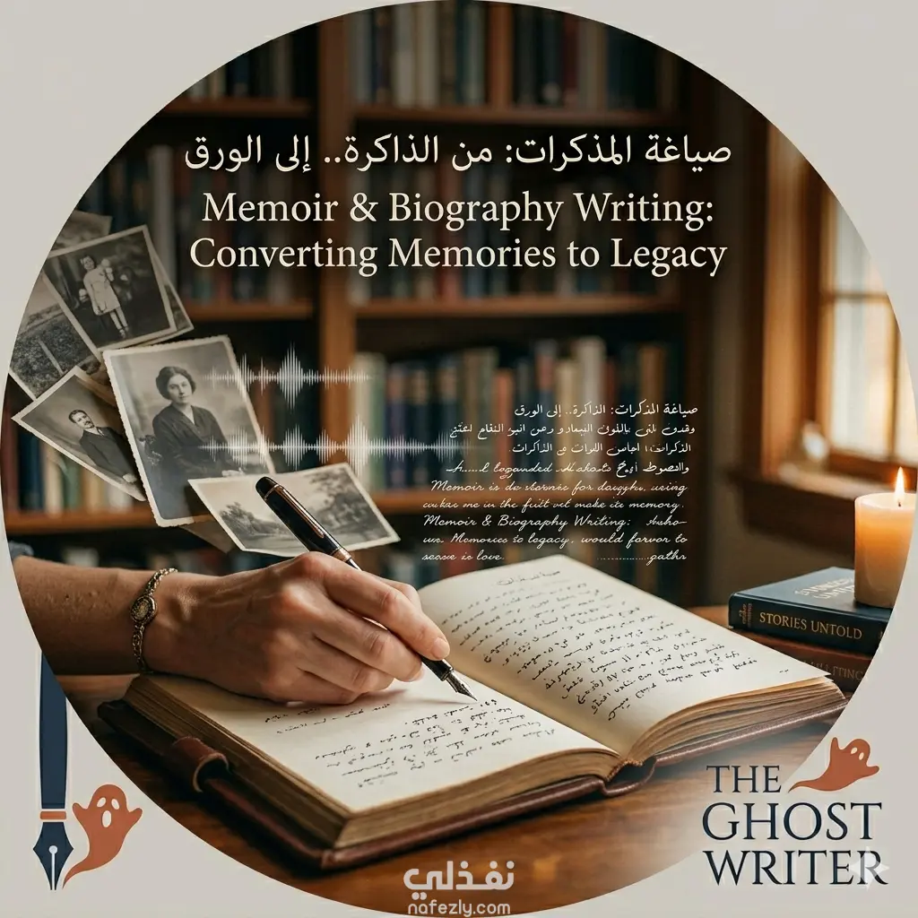 صياغة المذكرات الشخصية وتدوين السير الذاتية بروح أدبية. تحويل المقابلات الشفهية والمسودات المشتتة إلى كتاب متكامل يوثق رحلة حياة. ركزت في هذا النوع من المشاريع على استنطاق الشخصية وإبراز قيمتها الإنسانية مع الحفاظ على خصوصية النبرة والأسلوب، ليكون الكتاب إرثاً حقيقياً لا مجرد سرد للأحداث.