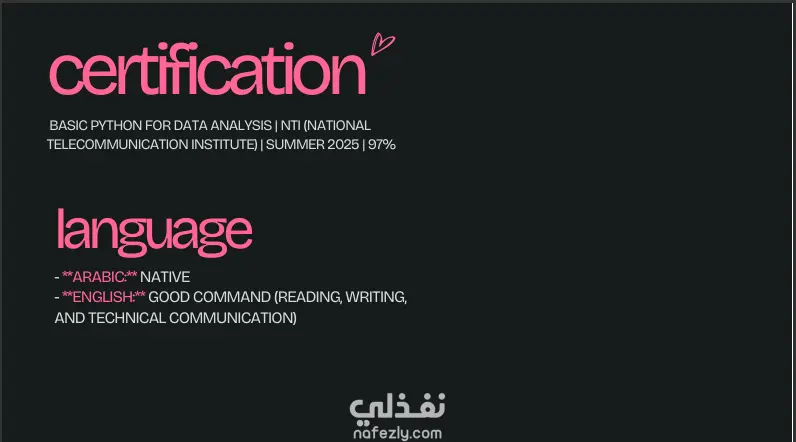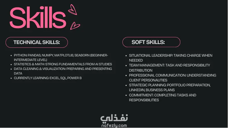 "هل تبحث عن بورتفوليو احترافي يبرز مهاراتك وينقل خبراتك بوضوح للعملاء؟أقدم خدمة تصميم بورتفوليو متكامل يعكس هويتك المهنية، مع التركيز على:هيكلة المحتوى: تنظيم الأقسام (حولك، التعليم، المهارات، والمشاريع) بطريقة تسلسلية احترافية.اللغة المهنية: صياغة نصوص تبرز قيمتك كخبير في مجالك وتجذب أصحاب الأعمال.التصميم الجذاب: تنسيق بصري مريح للعين يسهل على أصحاب العمل استيعاب مؤهلاتك في ثوانٍ.التوافق: الاهتمام بالتنسيق الذي يلائم أنظمة تتبع المتقدمين (ATS) لضمان أعلى فرص القبول.أنا لا أكتفي بوضع المعلومات فقط، بل أطبق فلسفتي في العمل: 'تعلم بشكل منهجي، طبق باستراتيجية، واعرض إنجازاتك
