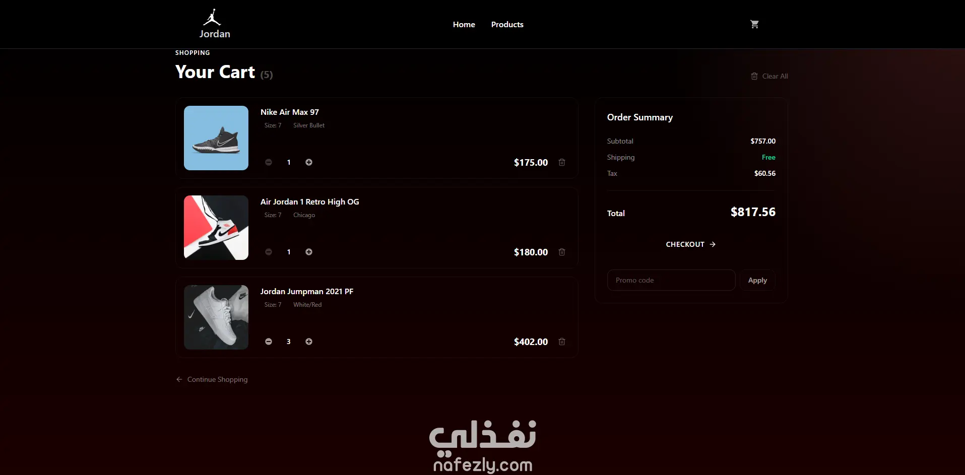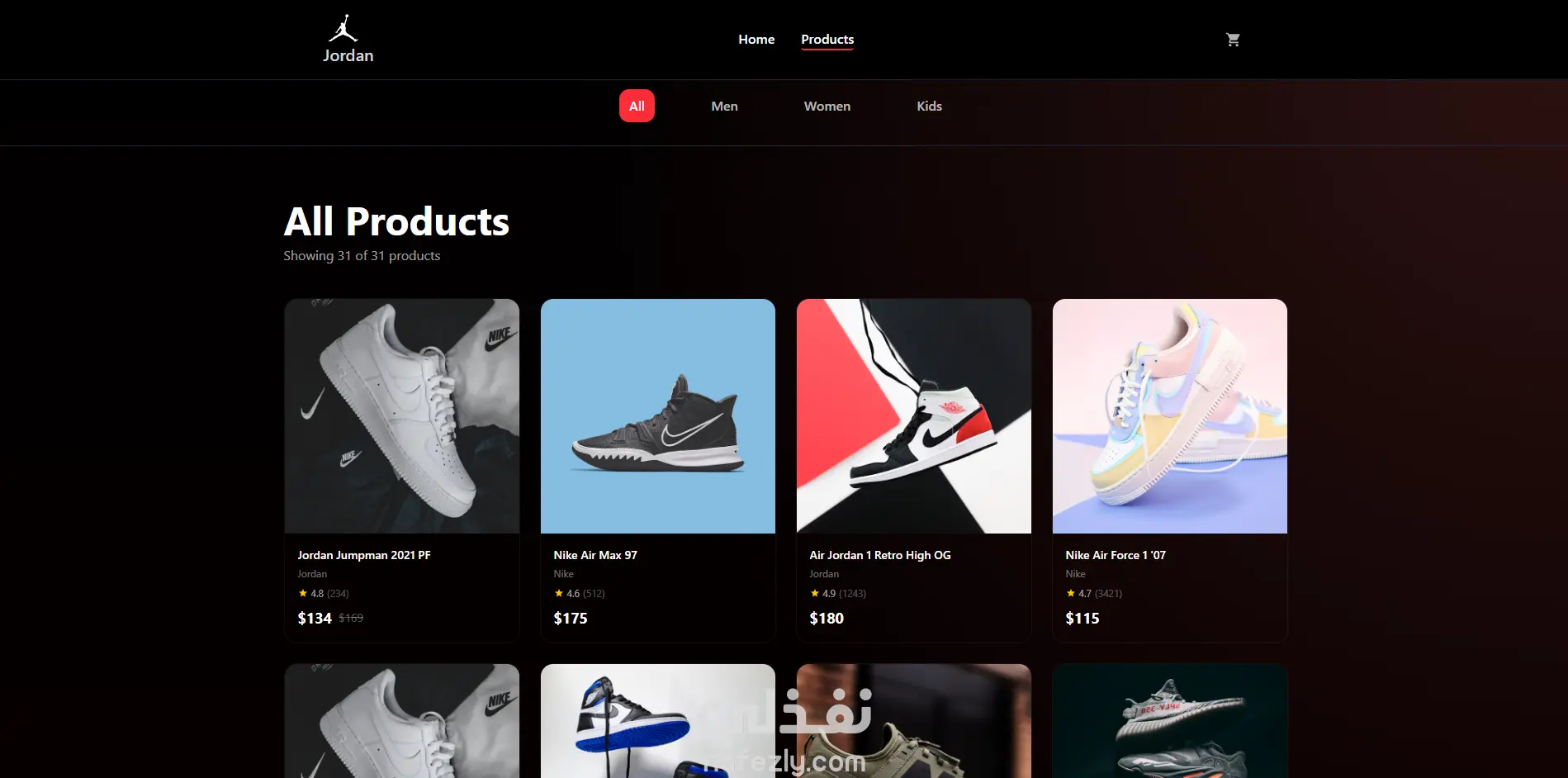 متجر إلكتروني لبيع أحذية Jordan باستخدام React
