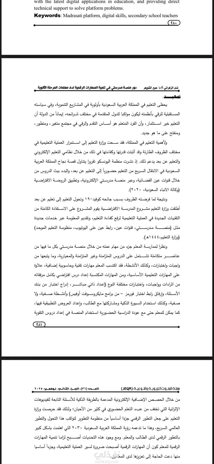 دور منصة مدرستي في تنمية المهارات الرقمية لدى معلمات المرحلة الثانوية في مدينة الرياض من وجهة نظر المعلمات