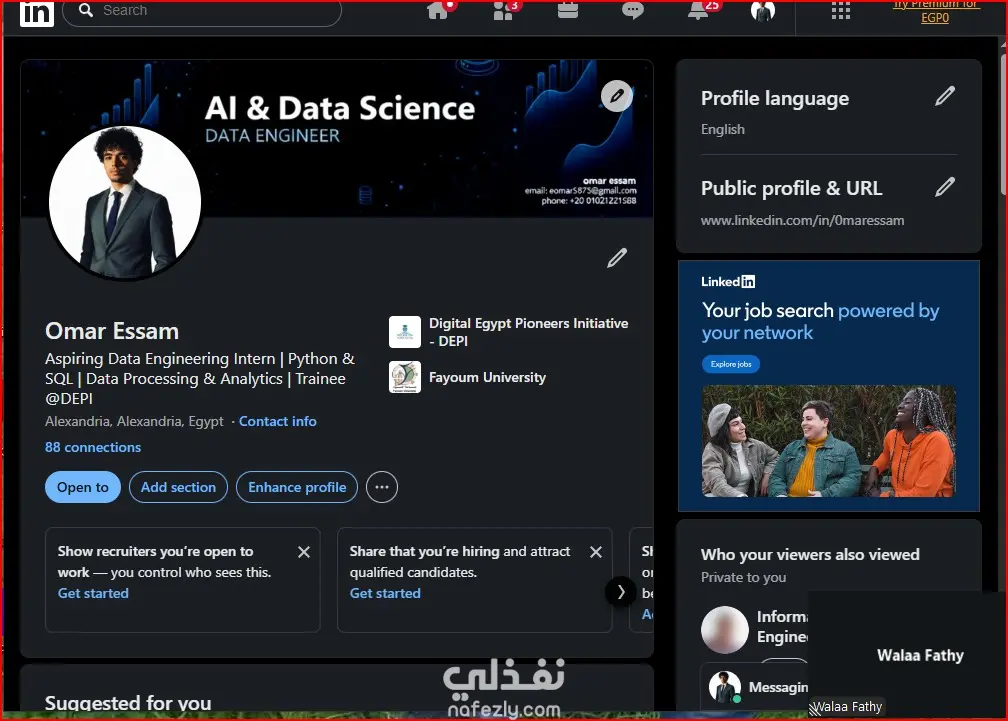 بساعدك تحسن بروفايل LinkedIn بتاعك بشكل بسيط واحترافي عشان يظهر قدام أصحاب الشغل بشكل أقوى. بشتغل على العنوان، الملخص، الخبرات، والمهارات، وكمان بظبط شكل البروفايل كله عشان يعبر عنك صح ويزود فرصك في الشغل أو الفريلانس.
