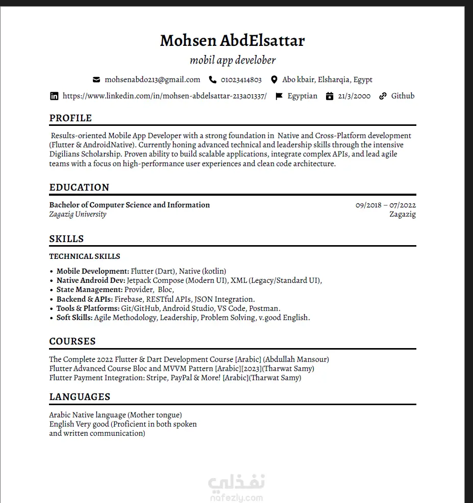 السيرة الذاتية هي انطباعك الأول لدى الشركات. سأقوم بتصميم وكتابة سيرتك الذاتية بأسلوب عصري، منظم، واحترافي يبرز نقاط قوتك ومهاراتك بشكل يشد انتباه مسؤولي التوظيف. تنسيق احترافي تصميم عصري ومنظم يسهل قراءته. توافق ATS: صياغة المحتوى بكلمات مفتاحية تضمن عبور سيرتك الذاتية من أنظمة الفرز الآلي للشركات الكبرى. صياغة المحتوى: إعادة صياغة المهارات والخبرات بأسلوب مهني قوي (باللغة العربية أو الإنجليزية). التسليم: ستحصل على نسخة PDF جاهزة للطباعة والرفع على المواقع.