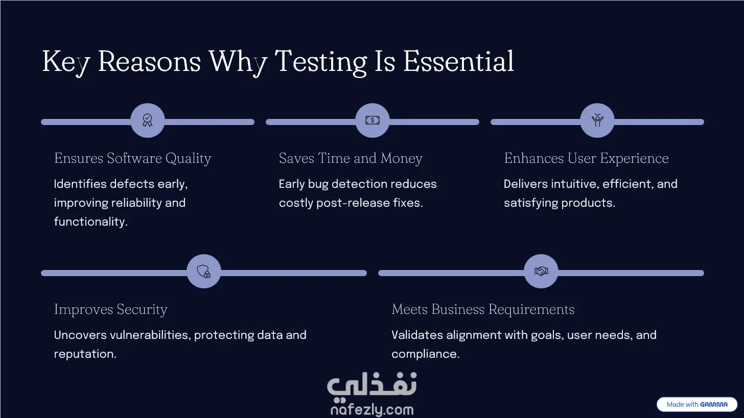 - يتضمن هذا العرض نبذه عن اختبار البرمجيات و اهميته و العواقب الناتجة عن اهماله