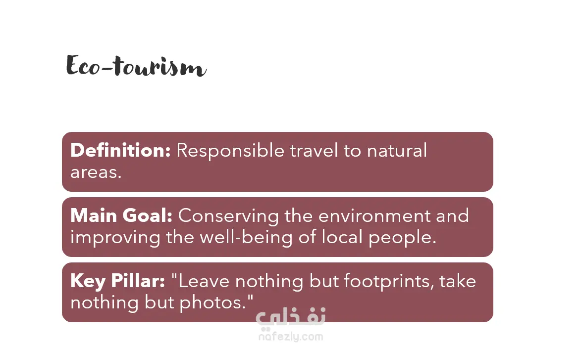 What is Eco-tourism? Building confidence Why it is Friendly (The Pros)Visual aids The Challenges (The Risks) How to be a True Eco-tourist?