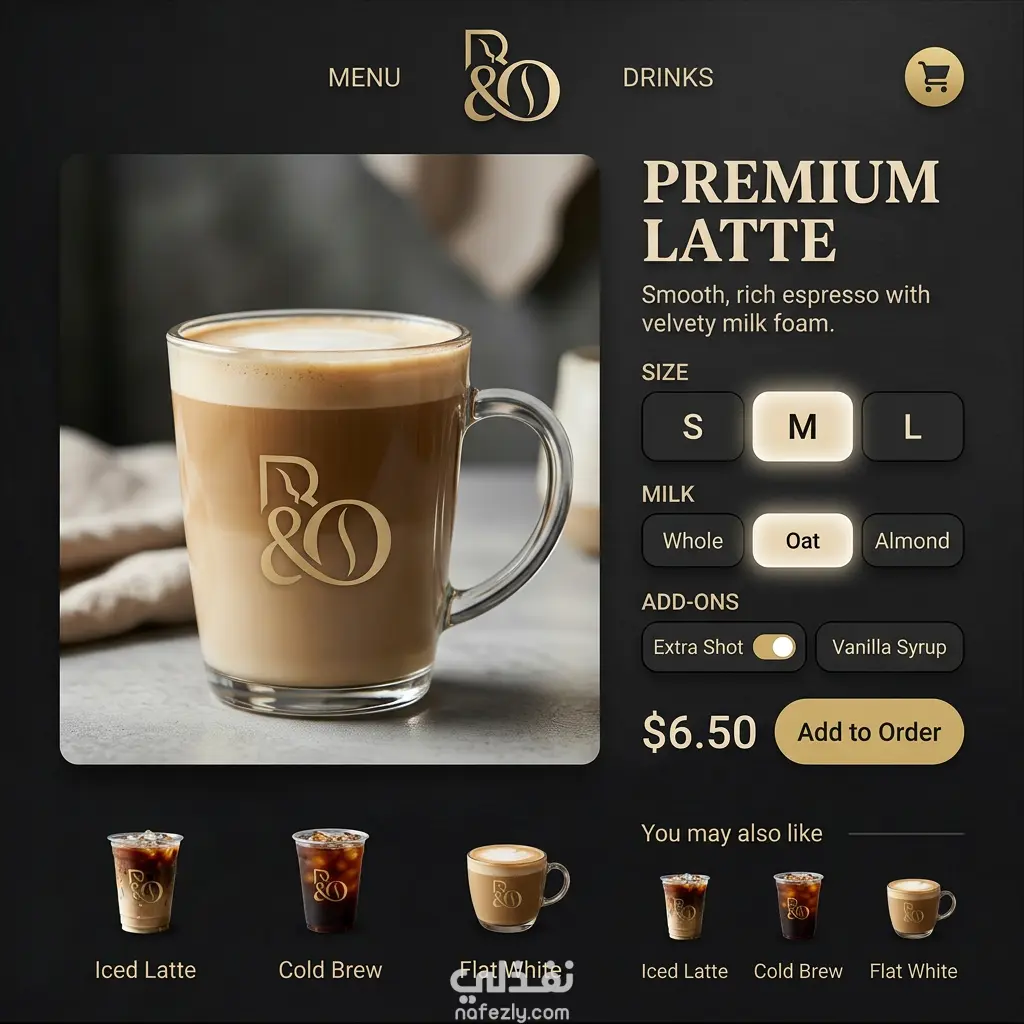 تصميم موقع إلكتروني احترافي لكافيه اسمه : B&O Caffe