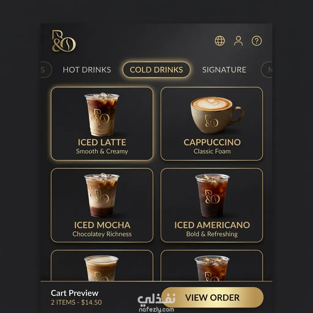 تم تنفيذ موقعين إلكترونيين لكافيه B&O Caffe لتغطية تجربة العملاء داخل الكافيه وخارجه. الموقع الأول مخصص للبيع أونلاين، يتيح للعملاء تصفح المنيو وإجراء الطلبات والدفع من خارج الكافيه بسهولة. الموقع الثاني مخصص للاستخدام داخل الكافيه عبر QR Code، حيث يقوم العميل بمسح الكود وفتح المنيو على الموبايل ثم اختيار الطلب وإرساله مباشرة من مكانه دون الحاجة لطلبه من الموظف بشكل يدوي. النظام داخل الكافيه يساعد على تسريع الخدمة، تقليل الضغط على الموظفين، وتنظيم الطلبات بشكل مباشر من العملاء إلى النظام.