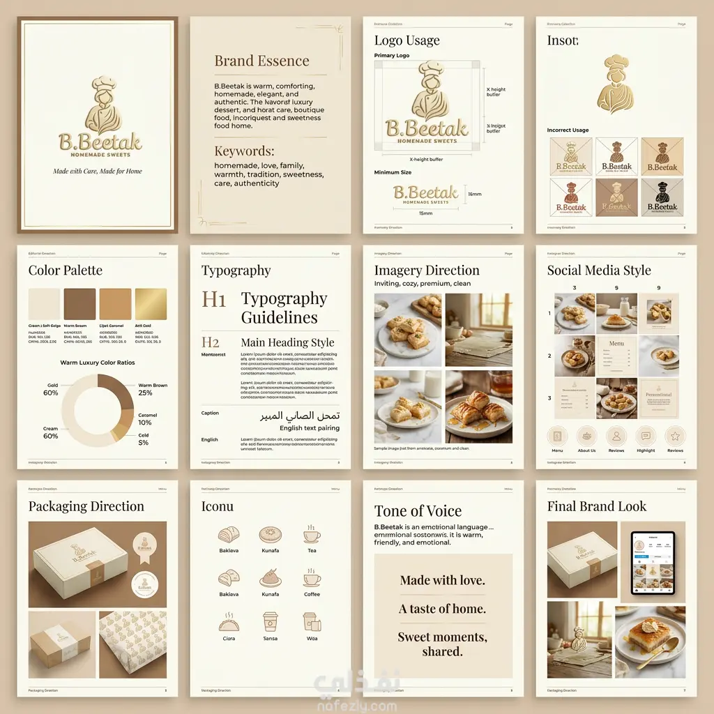 تم تصميم لوجو احترافي لعلامة B.Betak المتخصصة في المأكولات البيتية، يعكس الطابع البيتي والدفء في تقديم الطعام. التصميم بسيط وسهل التمييز، مناسب للاستخدام على الموقع الإلكتروني ووسائل التواصل والطلبات.