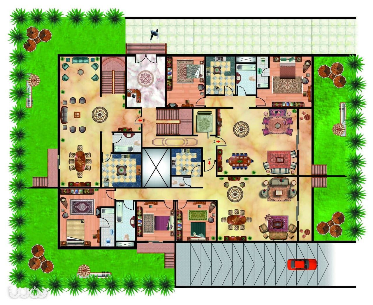 فرش وتلوين مسقط افقى لبلان معمارى