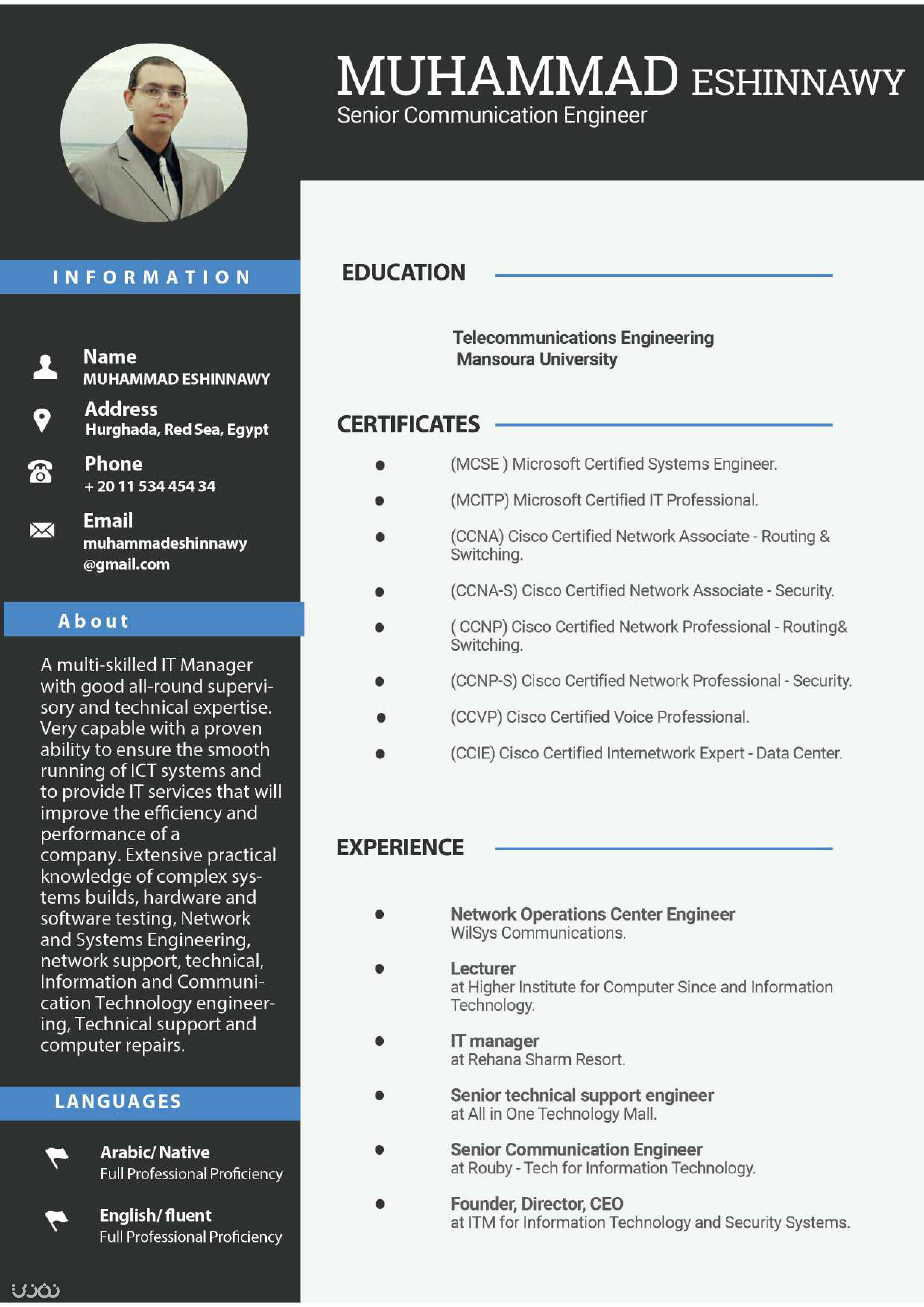 تصميم صفحات سيرة ذاتية باللغة العربية والانجليزية