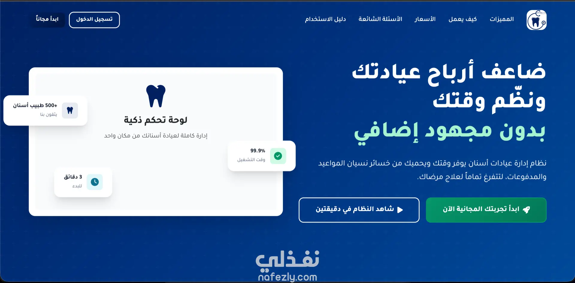 Astimal هو نظام سحابي (Cloud-based Software) متكامل ومخصص حصرياً لأطباء الأسنان في مصر والوطن العربي. يساعد طبيب الأسنان على إدارة سجلات المرضى (Dental Records)، تنظيم المواعيد، استخراج تقارير الإيرادات، وتذكير المرضى بمواعيد الجلسات عبر واتساب أوتوماتيكياً. النظام مثالي ومصمم ليتوافق مع العيادات الفردية الصغيرة وحتى مراكز الأسنان الكبيرة متعددة الفروع.