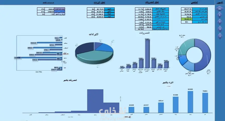 عمل تحليل للمبيعات و عمل داش بوورد لتلخيص النتائج بشكل يسهل قراءته علي برنامج اكسل مع ربط النتائج او التقارير ببعضها بحيث لو اخترت شهر معين مثلا او صنف معين الداشبورد كلها تتغيير بالتبعية