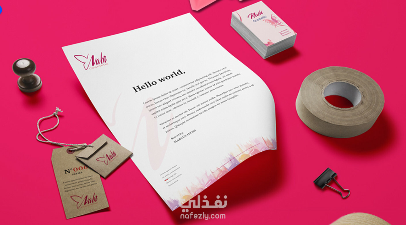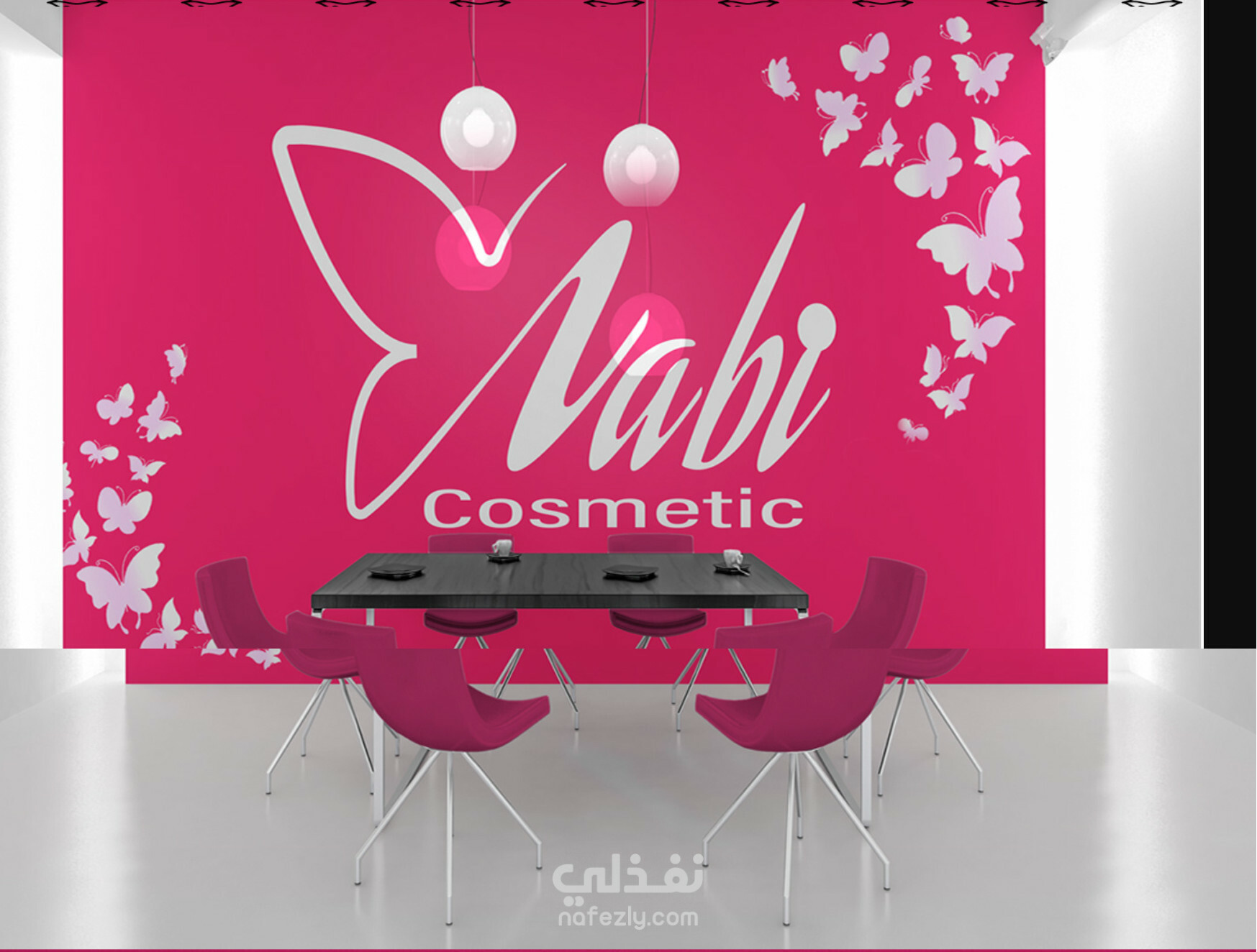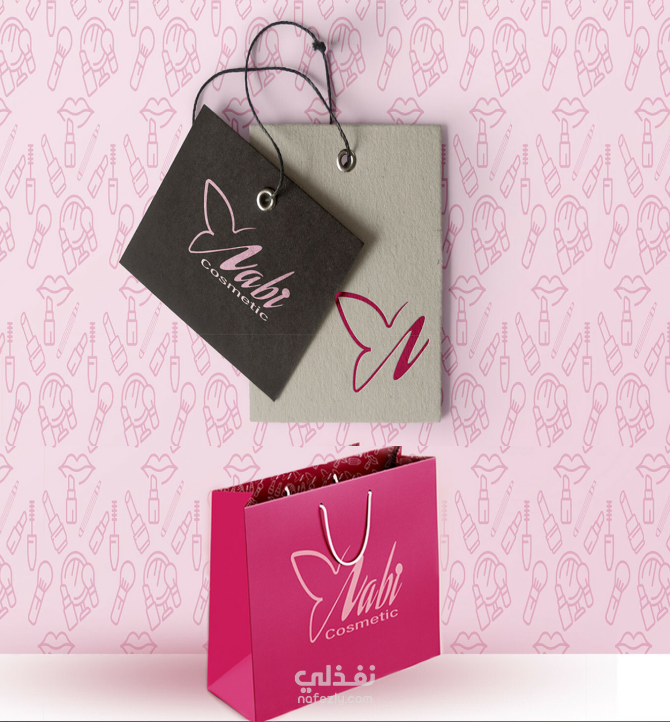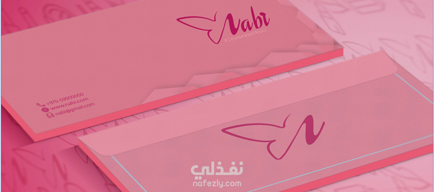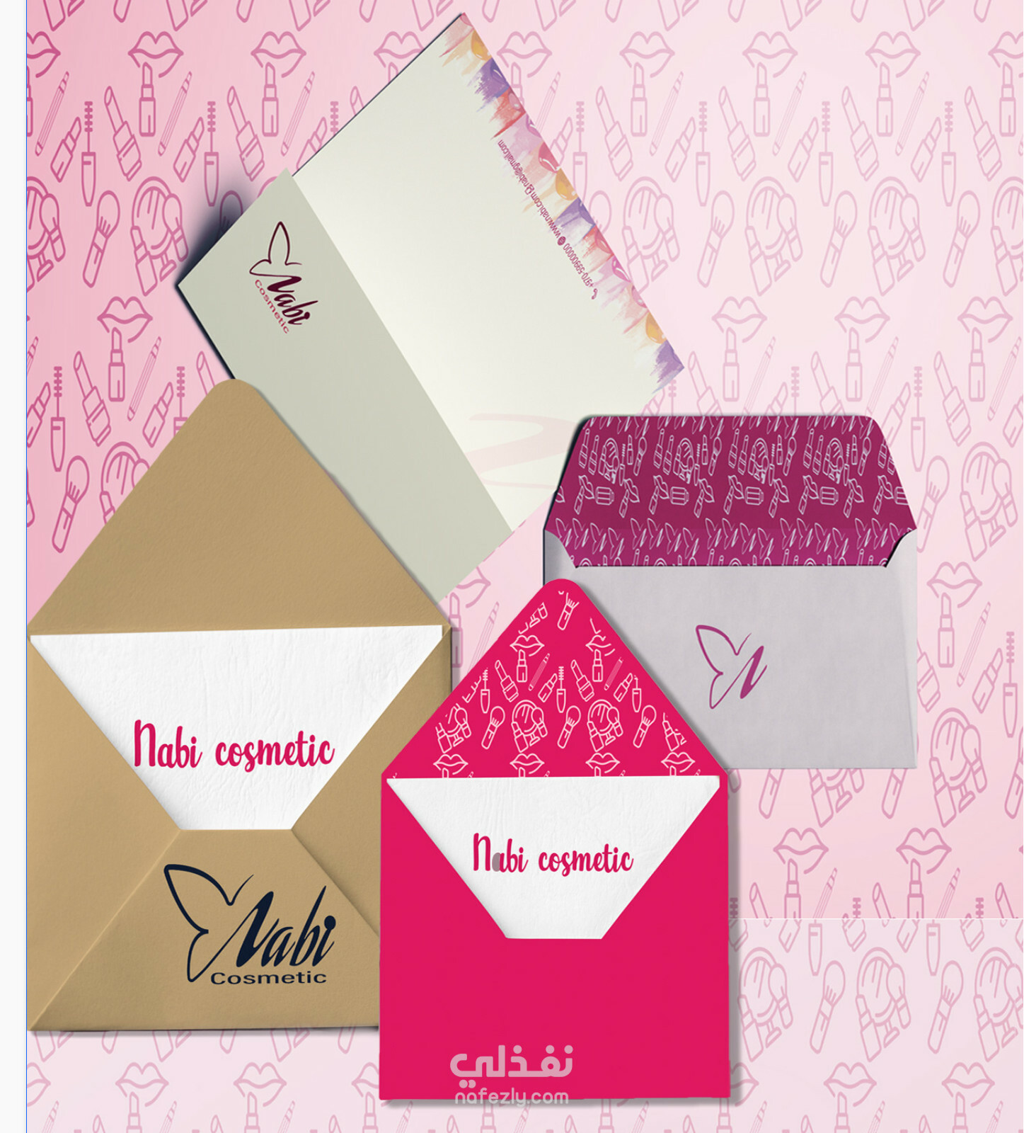 تصميم هُوِيَّة بصرية لشركة مستحضرات تجميل - نابي Nabi - نابي لمستحضرات التجميل تم تصميم الشعار، كرت عمل، مظروف، ورق A4, فلاير، لوحة عرض billboard padge