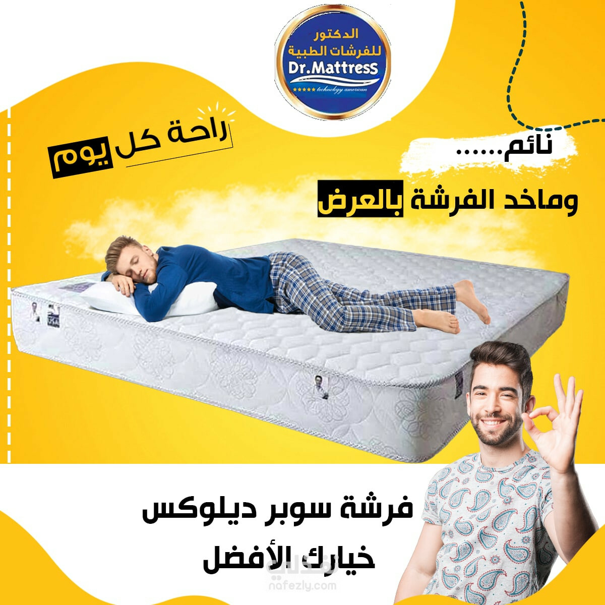 اعلان لصالح شركة الدكتور للفرشات الطبية طريقة عرض ولفت انتباه جميلة للزبون لعرض مدى راحة الفرشات و جمالها