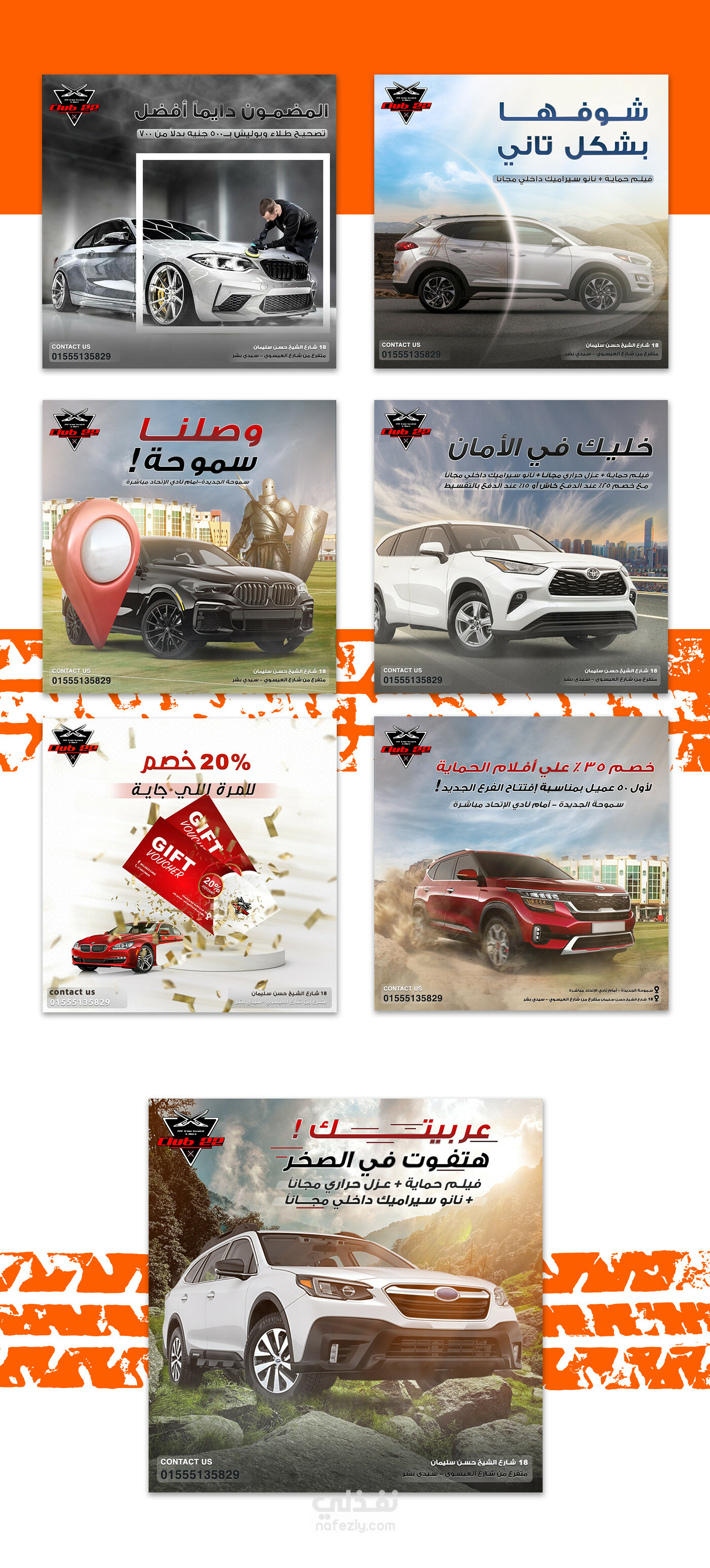 تصاميم سوشيال ميديا في مجال السيارات, لعدة علامات تجاريه في مصر تعمل بالصيانه و العنايه وأفلام الحماية