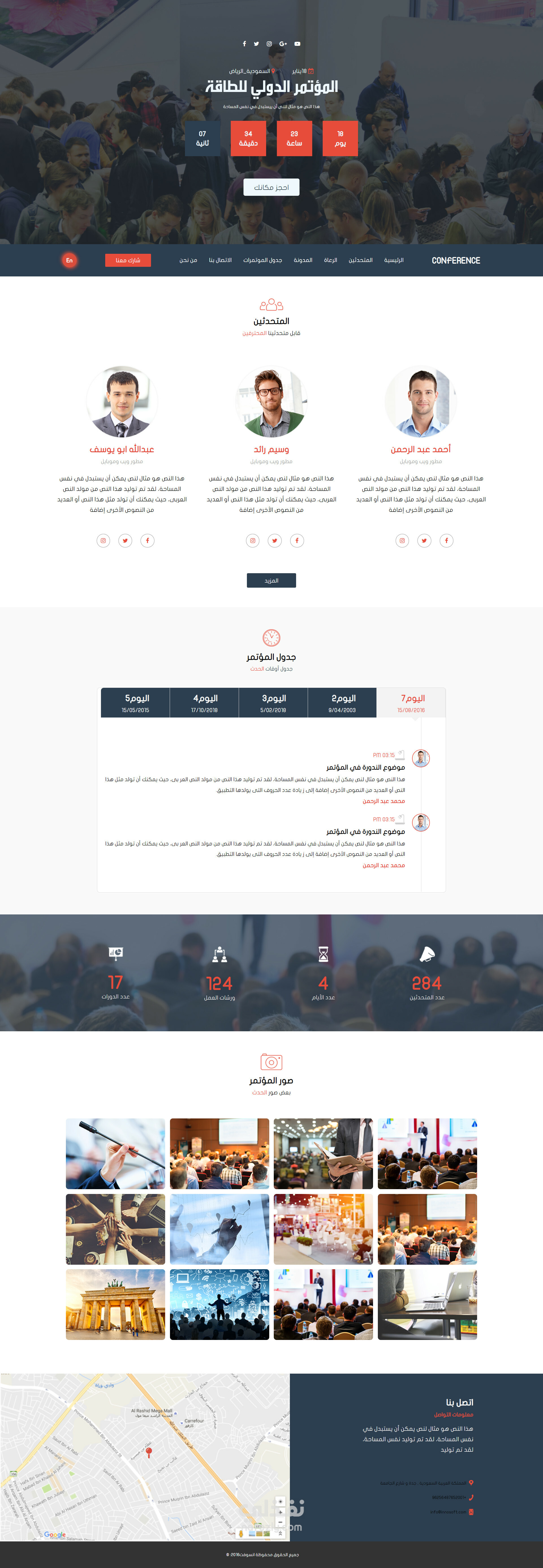 موقع مؤتمرات دولية للطاقة حيث تم التصميم بشكل عصري و حديث و جذاب وكذلك تم تصميم الموقع ليكون متجاوب مع كافة اجهزة العرض مثل الهواتف والاجهزة اللوحية.
