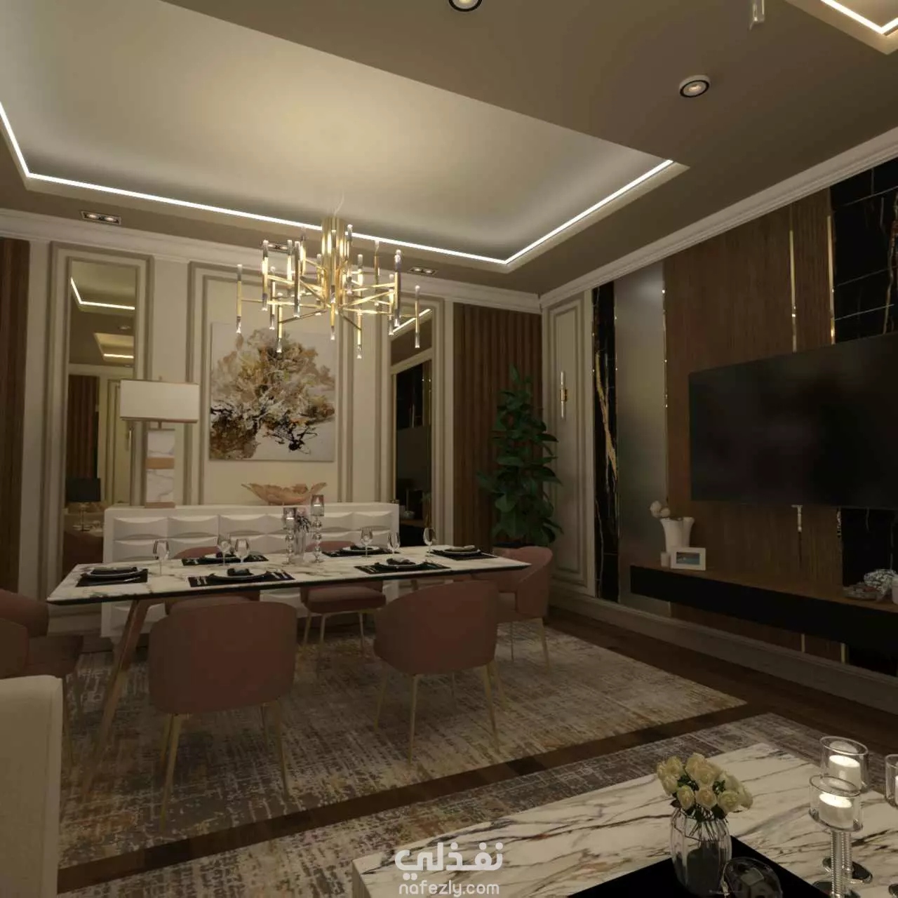تم تصميم صاله استقبال نيو كلاسك ببرنامج الاتوكاد و 3d max