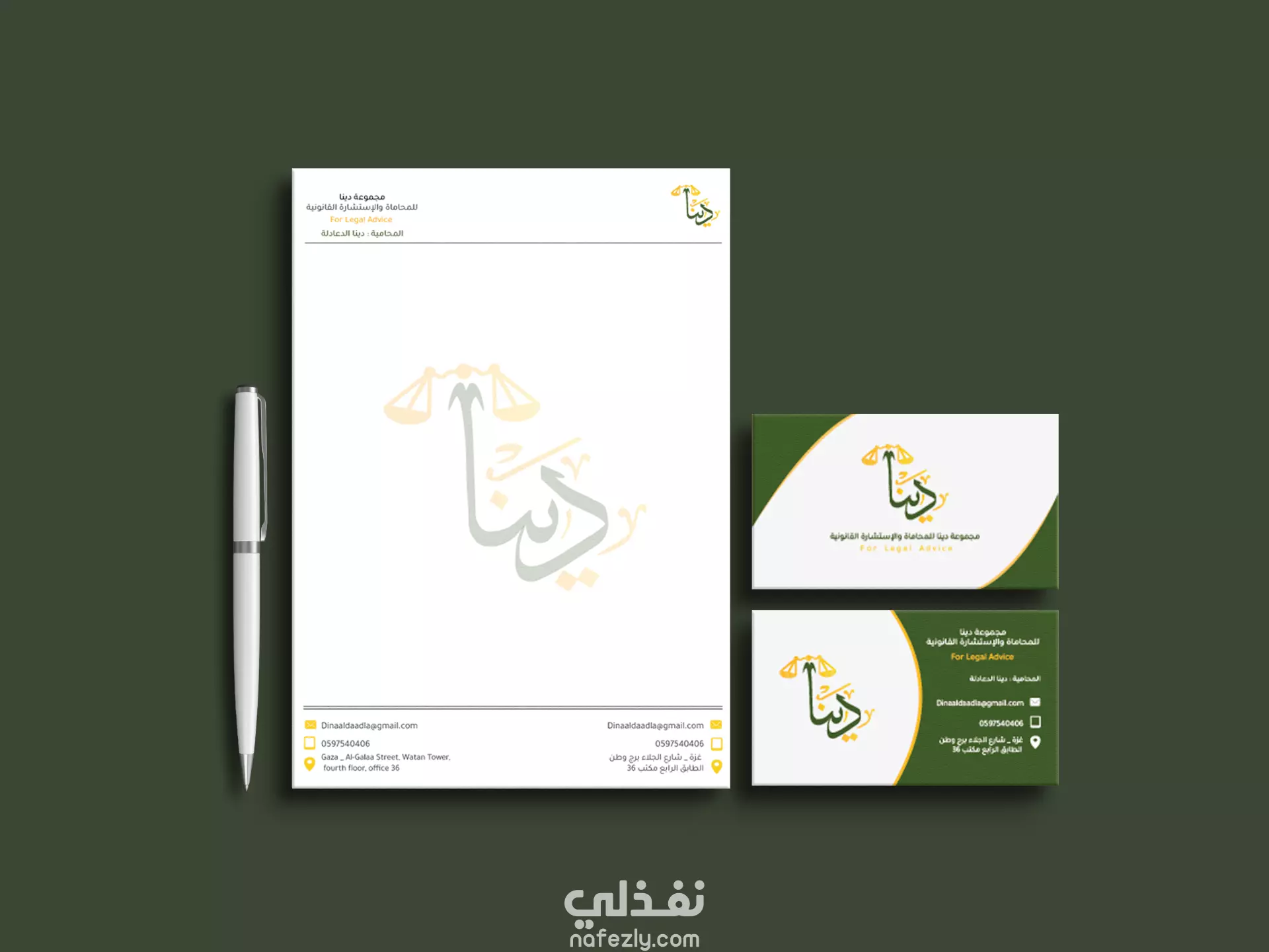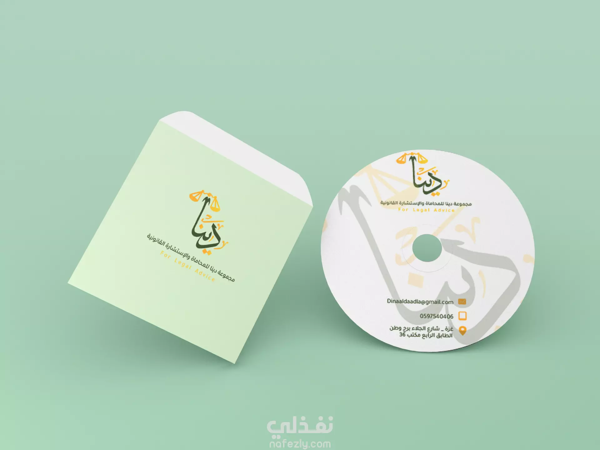 تصميم هوية بصرية لمحامية اجزائها .. البزنس كارت ورق المراسلات و الظرف السي دي وظرفها الختم البروشور الفلير
