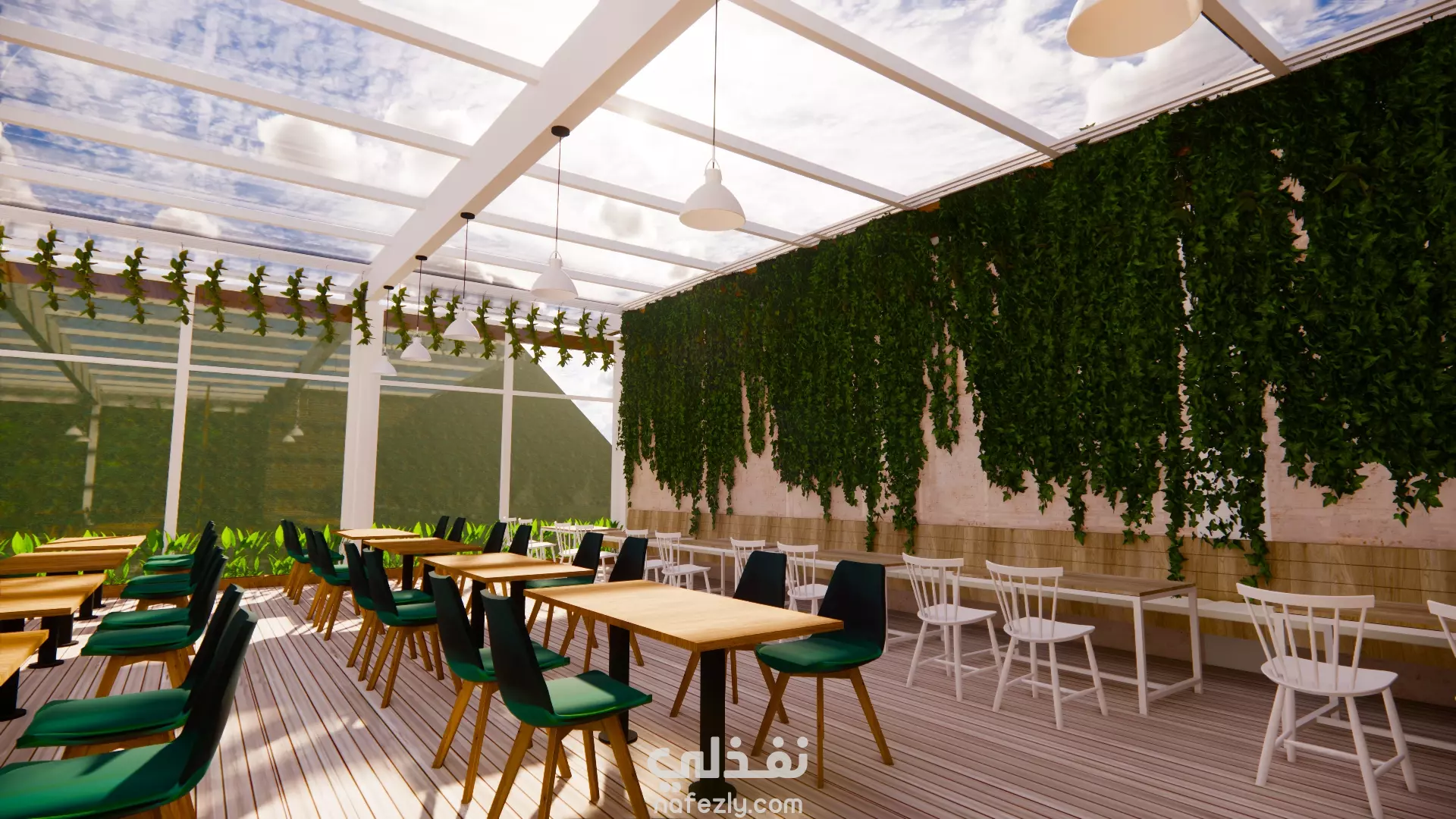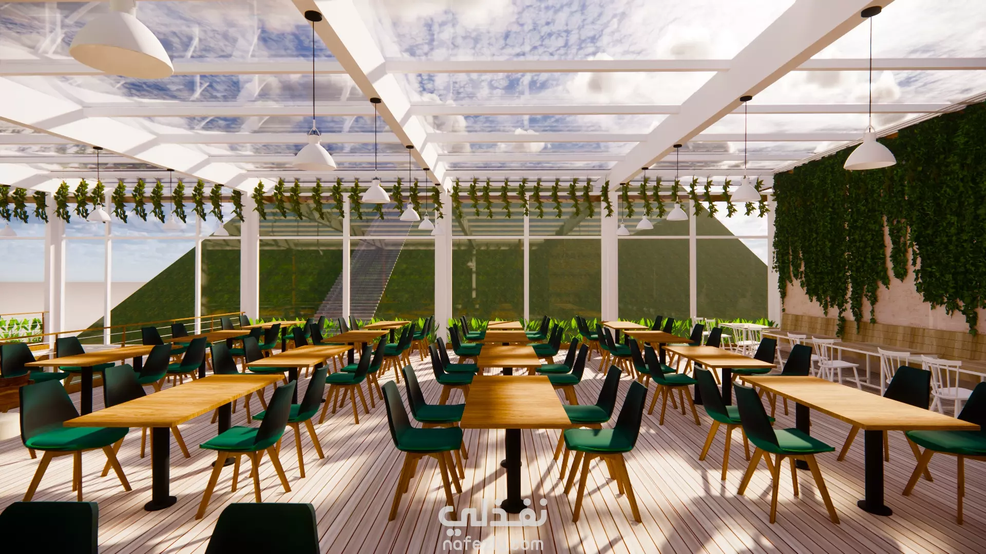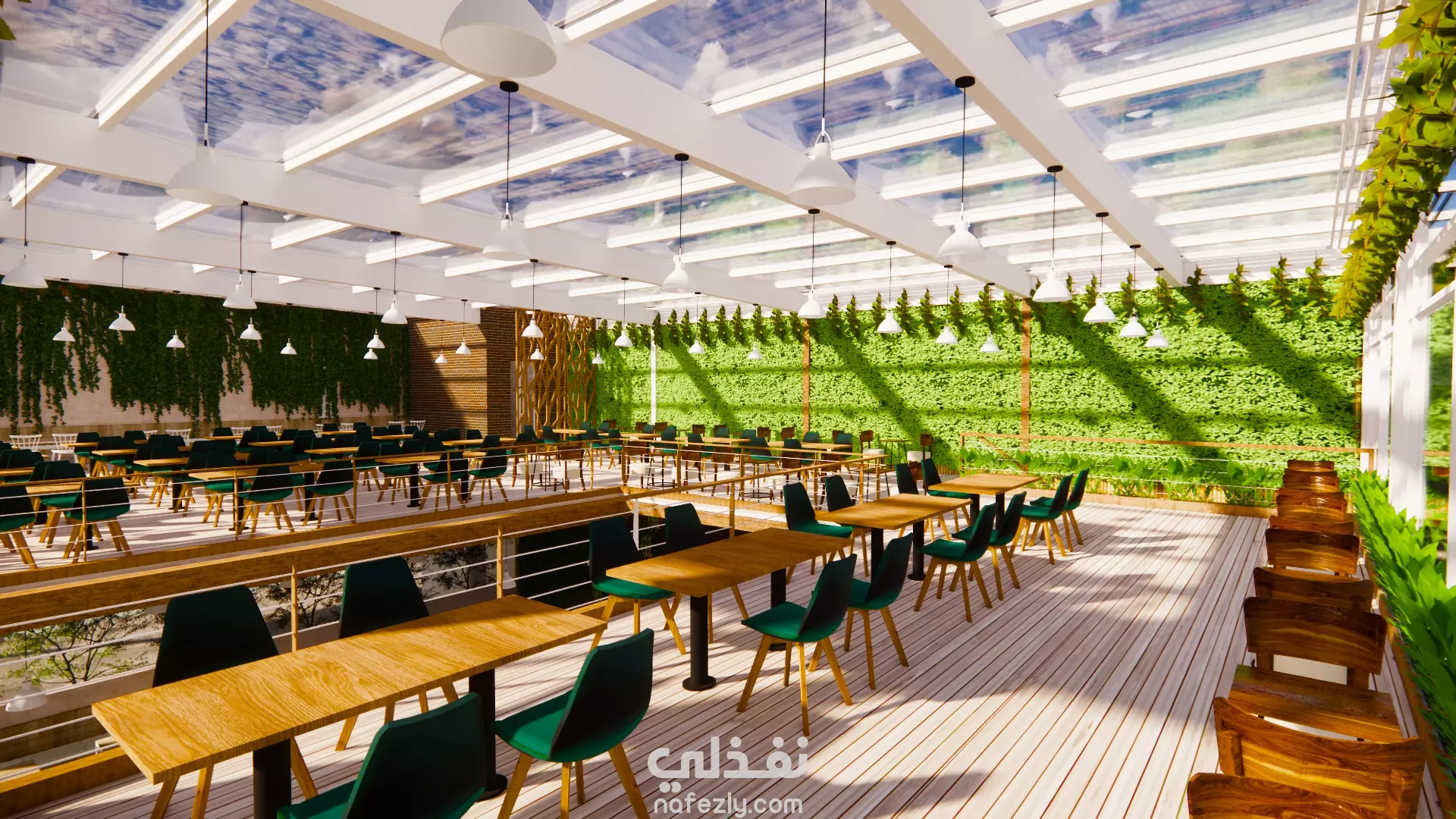 تصميم داخلي لمطعم مستدام على حسب الاسس والمعاير الخاصة والمطلوب وما يناسب المكان وصاحب العمل وايضا بنا على رغبته