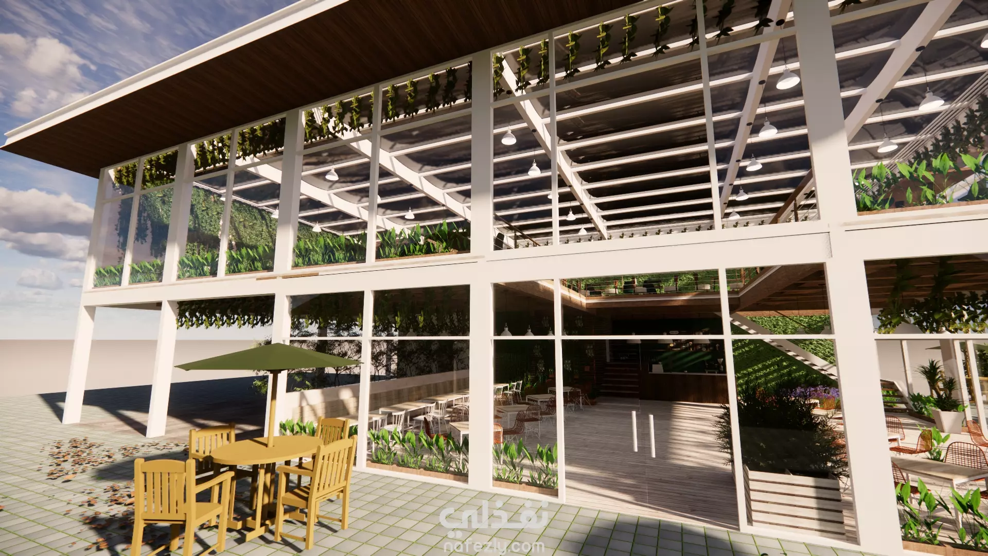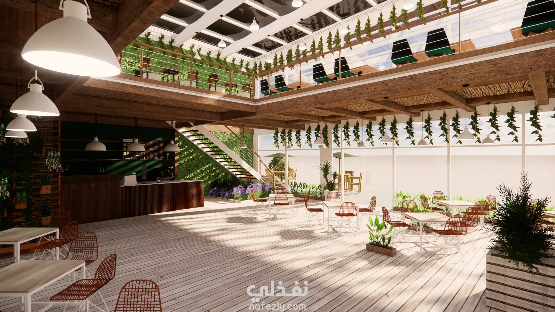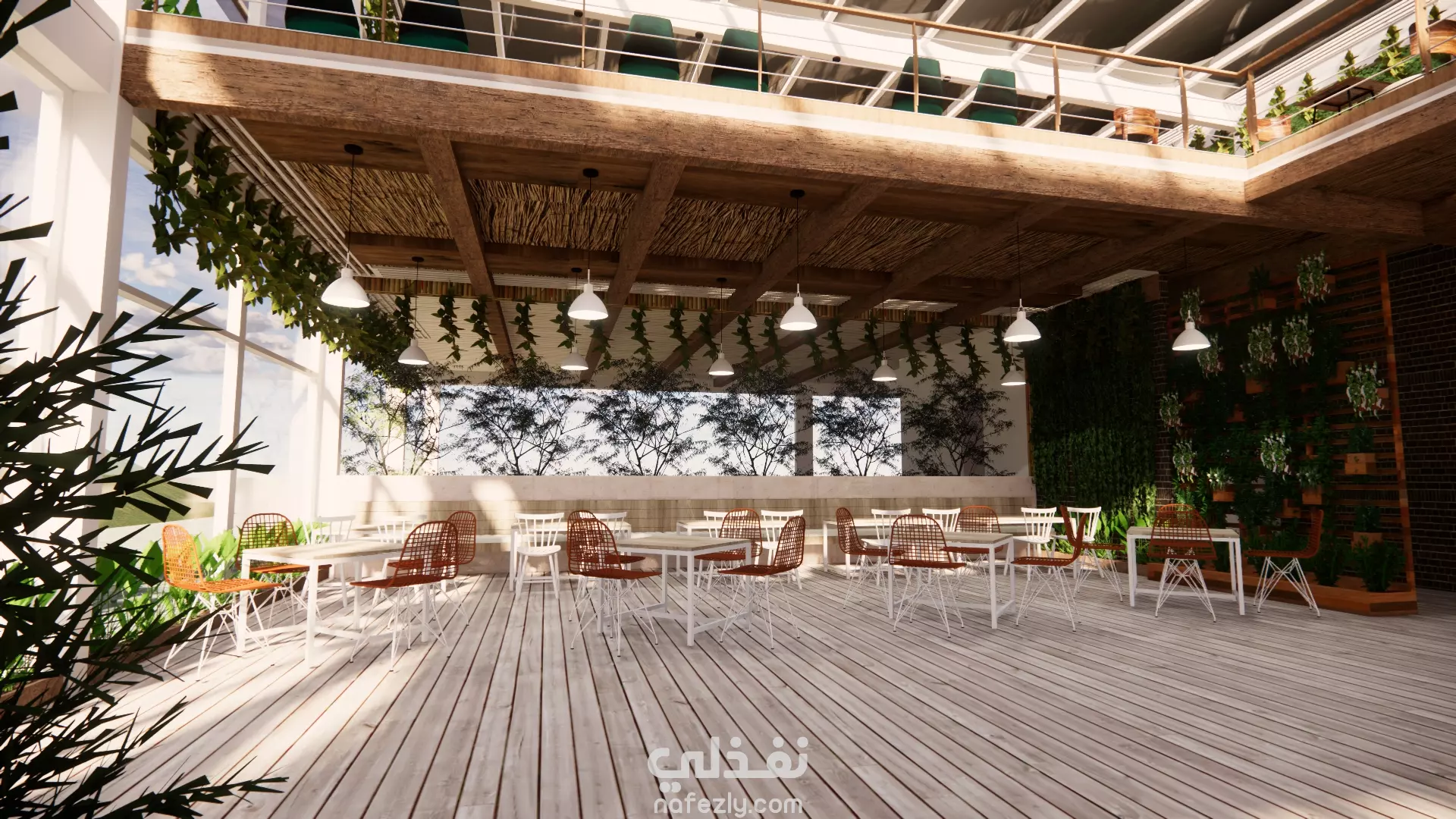 تصميم داخلي لمطعم مستدام على حسب الاسس والمعاير الخاصة والمطلوب وما يناسب المكان وصاحب العمل وايضا بنا على رغبته