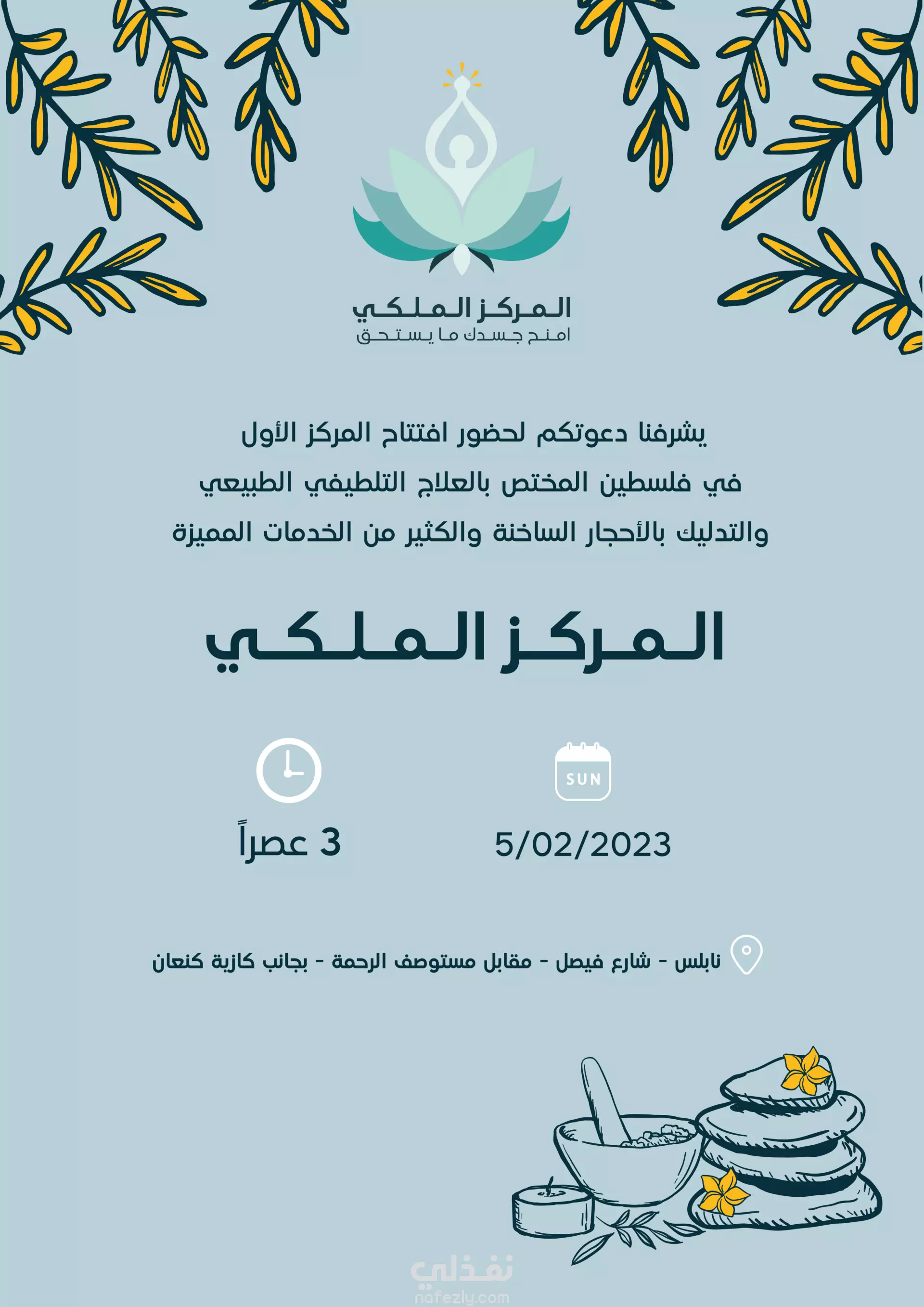تصميم هوية بصرية لمركز علاج تلطيفي وطبيعي ويقدم خدمات عديدة مثل التدليك بالأحجار الساخنة والوخز بالابر الصينية والكثير من الخدمات المميزة.