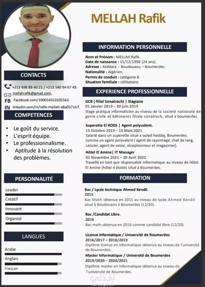 السيرة الذاتية هي مرآة الشخص المتقدم إلى وظيفة ما, حيث أنها تقدم مستواه الدراسي ومختلف الديبلومات الحاصل عليها, تبرز جميع الخبرات المار بها بالإضافة لجميع مواهبه وقدراته. السيرة الذاتية المحترفة هي الطريق المختصر لكسب إعجاب صاحب العمل و تعطي حظا أوفر للحصول على الوظيفة. نقدم لكم على مستوى منصة خمسات, خدمة كتابة سيرة ذاتية محترفة خاصة بك تلخص جميع حياتك الدراسية والمهنية تساعدكم. الخدمة تكون باللغة العربية و الإنجليزية والفرنسية, ويمكنكم الحصول عليها على شكل صورة, PDF, PPTX , WORD. لمزيد من المعلومات يرجى التواصل معنا في أي وقت.