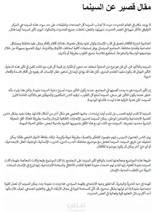 هذا مقال قصير عن السينما قمت بترجمته من الإنكليزية إلى العربية يتكلم المقال عن أهمية السينما في المجتمع وتأثيرها على الأشخاص من الجانبين الإيجابي والسلبي موضحا العديد من النقاط كسوء استخدامها كأداة تأثير قوية وشموليتها بالتطرق لمختلف أنواع المواضيع والقضايا ستجد رابط المقال في الأسفل شكرا لتصفحك معرض أعمالي
