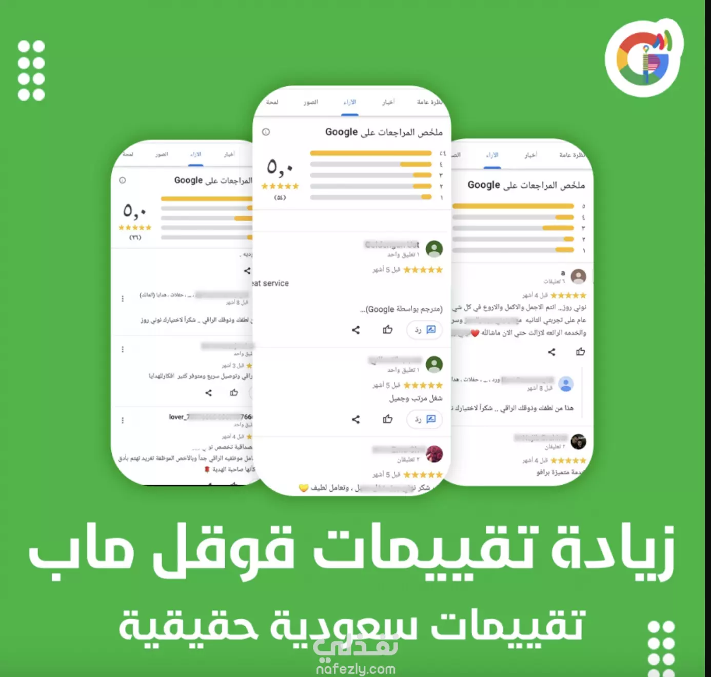 لأصحاب الأنشطة التجارية إذا كنت تبحث عن رفع تقييم فندقك أو متجرك أو مطعمك او نشاطك التجاري أو أي شيء على جوجل ماب إذا كنت تبحث عن تقييمات خمس نجوم ومراجعات رائعة تخلو من الأخطاء اللغوية فأنت في المكان الصحيح مميزات الخدمة : جميع التعليقات والتقييمات تكون 5 نجوم التعليقات من اختيارك في حالة رغبتك التعليقات يتم تجهيزها خصيصا لأجلك ومتوافقة مع نشاطك تساعدك على زيادة الزبائن والرفع من نشاطك التجاري الدقة في أداء الخدمة وبكل احترافية نوفر لك ضمان لمدة شهر السرعة على حسب الطلب وفي العادة تكون من يومان حتى 10 ايام وقد تكثر حسب الكمية تــــــــــنـــــــــــويــــــــــــة عند اختفاء الموقع او توقفه اثناء الخدمة يعتبر الطلب "مكتمل" ولن يتم التعويض الخدمة لكل العالم مع التنويه ان التعليقات بأسماء خليجية او اجنبية وقد تحتوي ايضا على حسابات مرشدين محليين يمكنك طلب خدماتك الخاصة من خلال التواصل معنا عبر الواتساب عند الاستعانة بطلبات او مواقع اخرى او اشخاص لزيادة التقييمات في فترة الطلب او الضمان سيعتبر ضمانك ملغي ولن يتم تعويضك بشيء يمكنك الطلب من ١٠ تقييمات الى ١٠٠٠ تقييم + تعليق لكل تقييم والسعر حسب العدد المطلوب نقدم خدمات زيادة متابعيين على الانستقرام حسب العدد. المطلوب