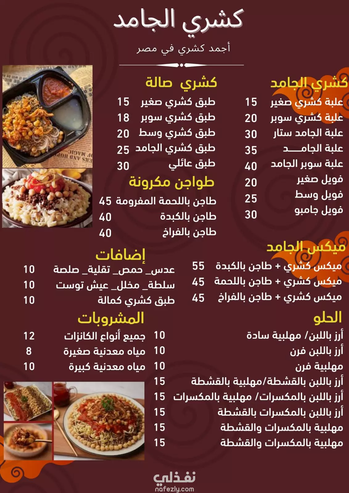 مينو مطعم كشري الجامد