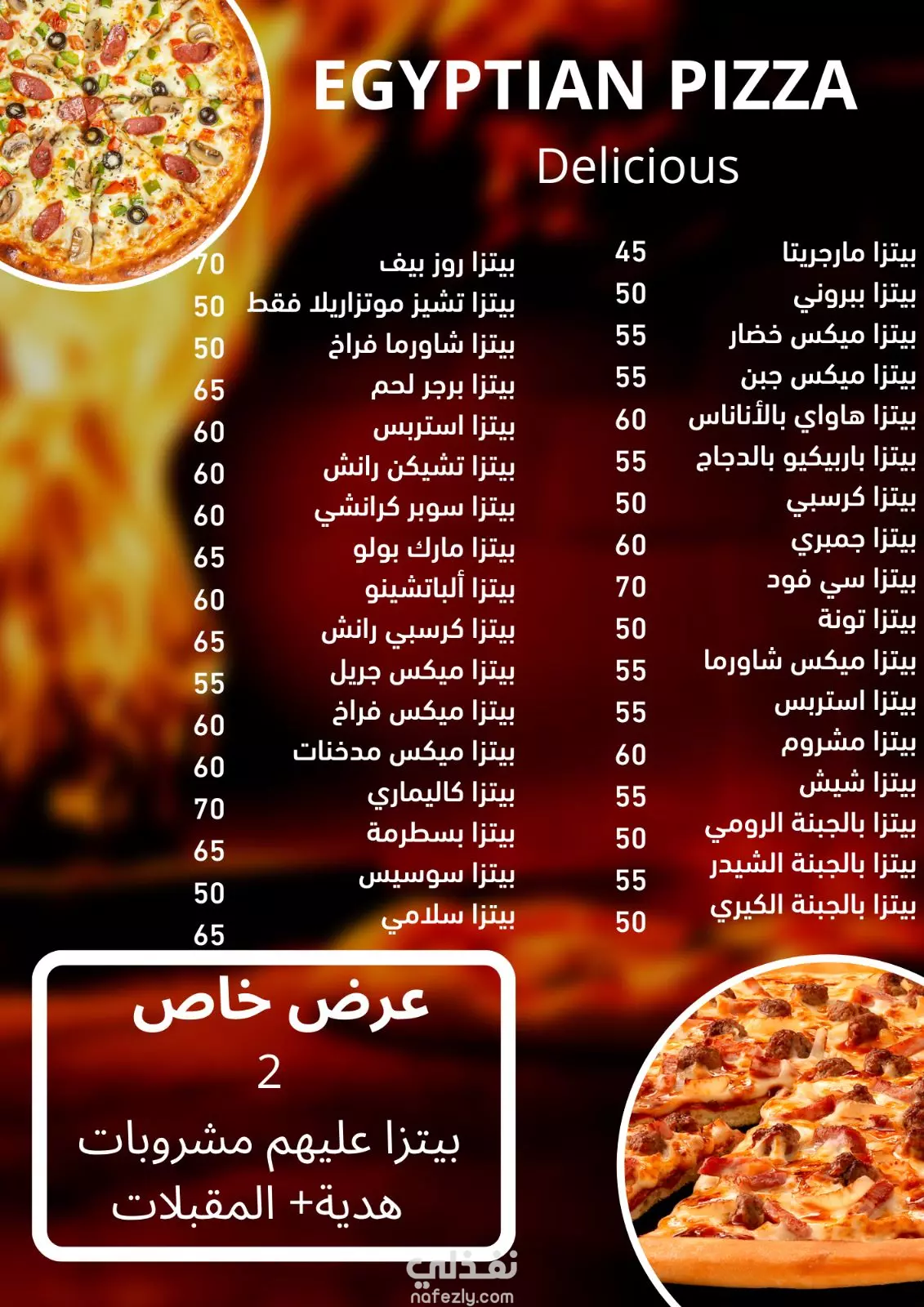مينو مطعم Egyptian Pizza